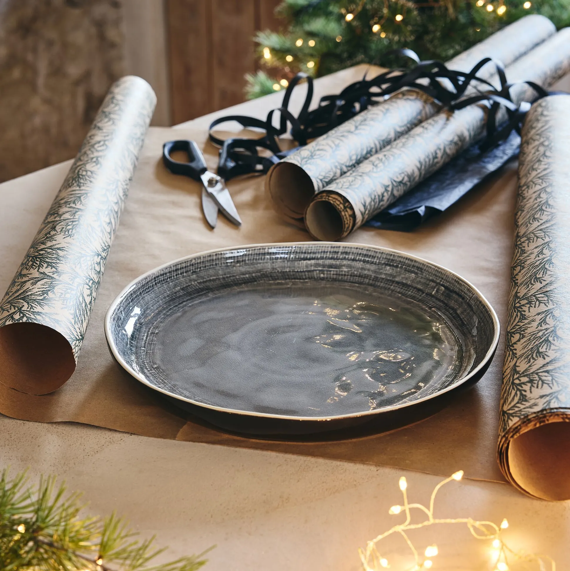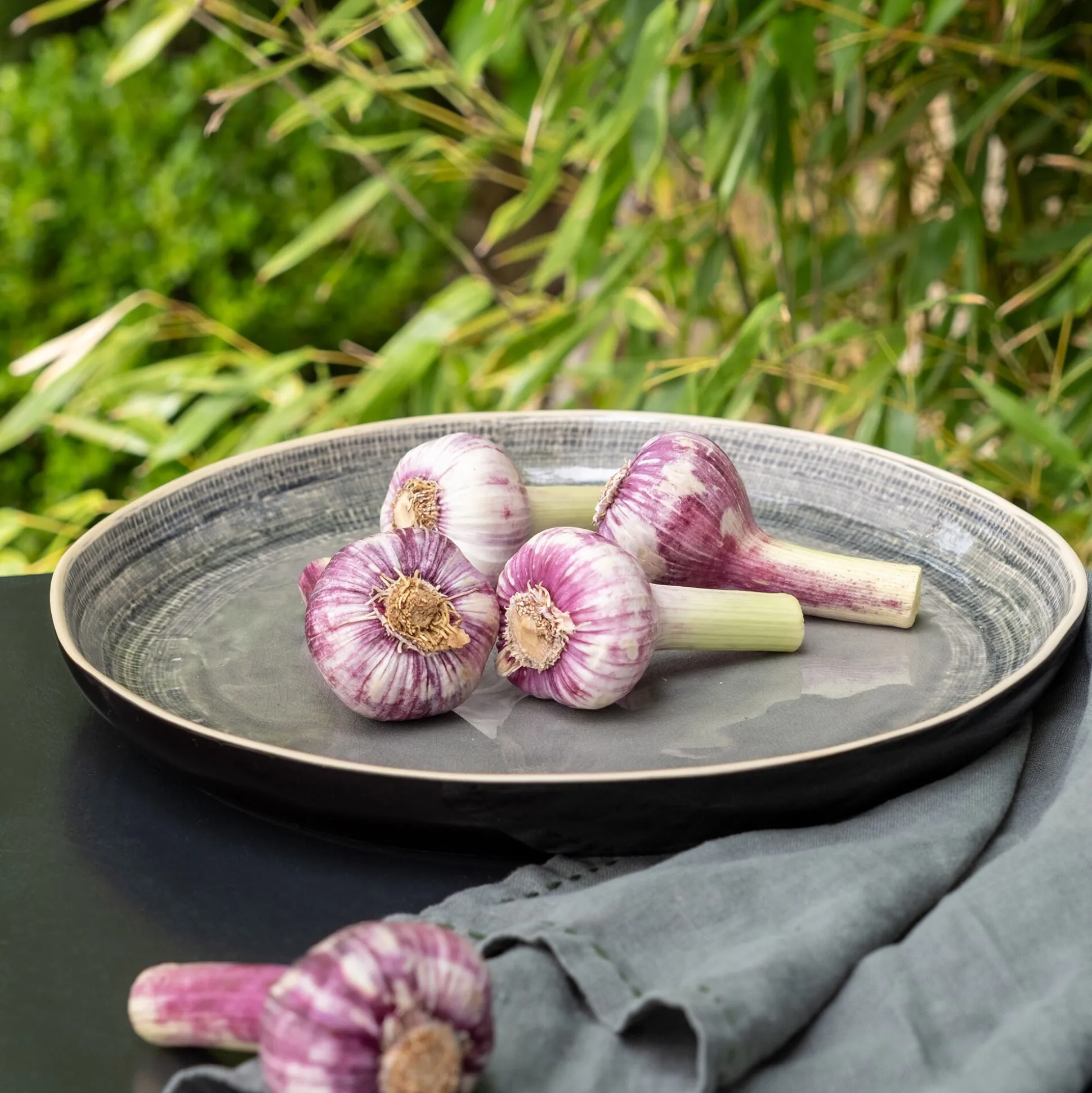 Plat de présentation en grès D34,2cm – bleu