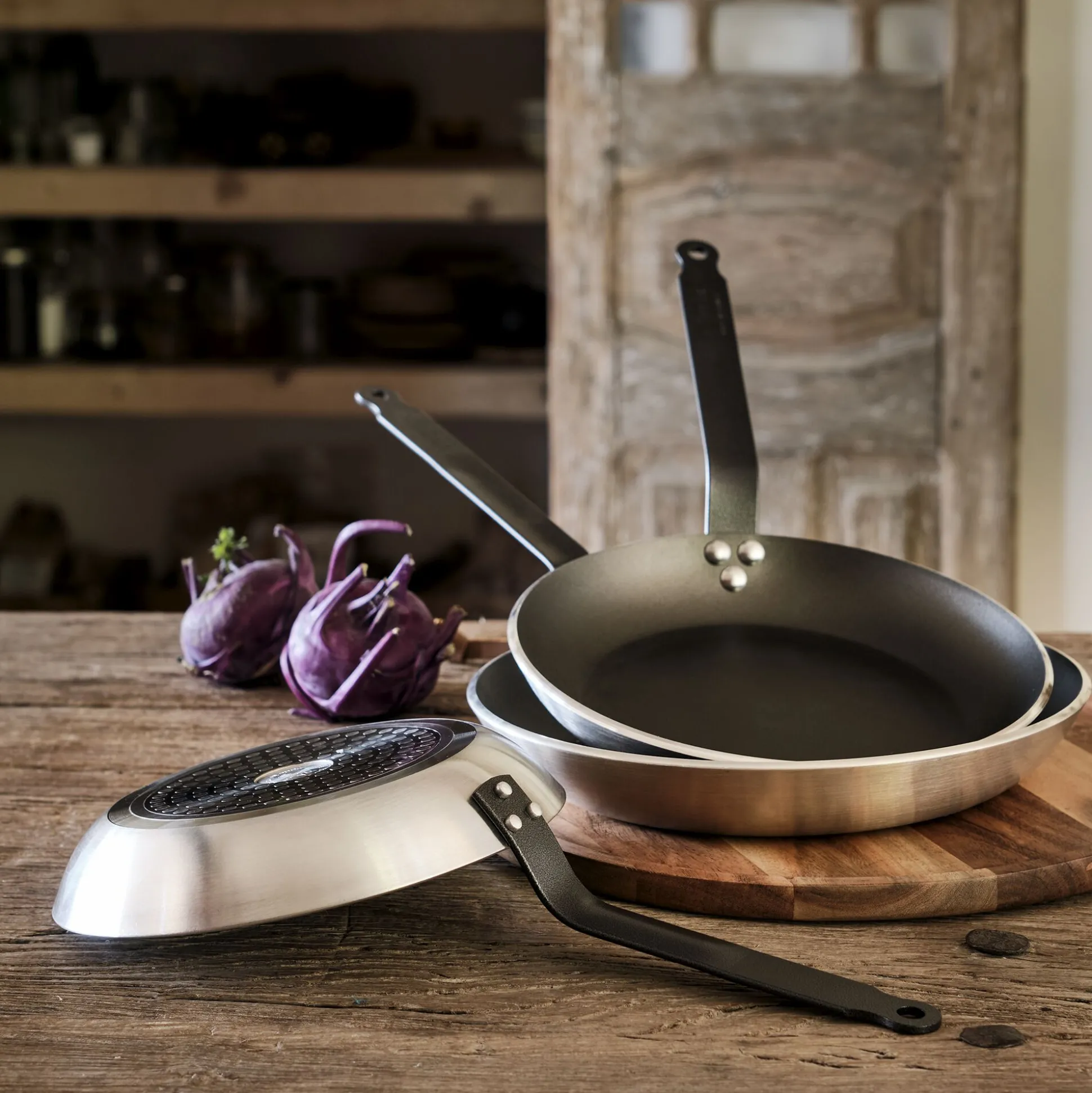 Cette poêle en aluminium de 32 cm de diamètre est un véritable atout à avoir dans la cuisine. Cette poêle en métal profite d’un traitement anti-adhésif, garantie d’une cuisson saine et d’un nettoyage facilité. Cette pôele ronde est idéale pour saisir, griller et dorer vos aliments. De qualité professionnelle, cette poêle anti-adhésive présente une « coupe lyonnaise » qui se caractérise pas la rondeur des courbes. Les aliments peuvent ainsi facilement glisser de la poêle à l’assiette. Cet ustentile est compatible avec tous feux dont induction.