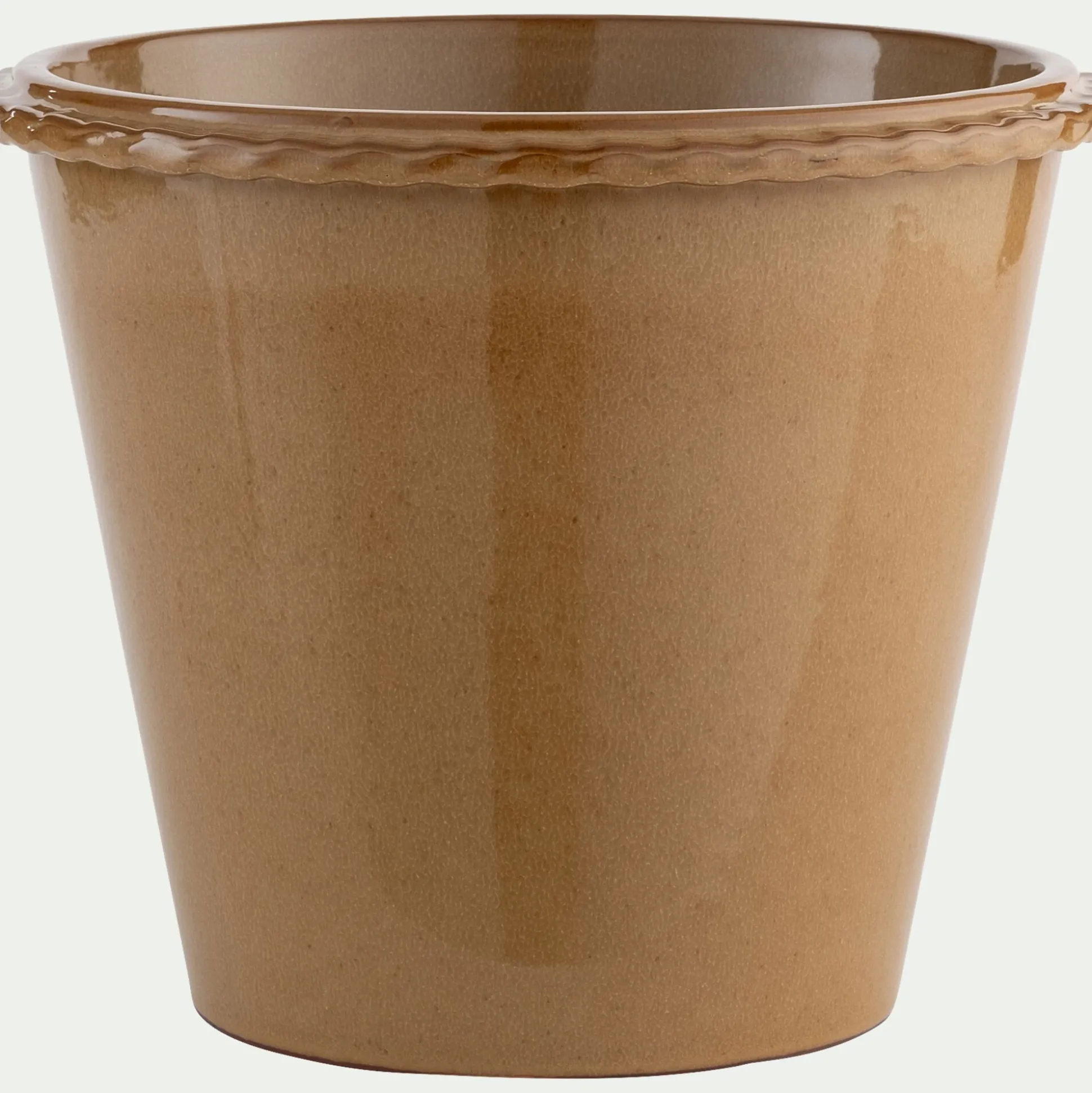 Le pot d’extérieur Arudy allie la beauté de la terre cuite à une finition brillante, avec son vernis jaune. Conçu pour être à la fois fonctionnel et décoratif, ce pot dispose d’un trou de drainage, idéal pour être posé directement sur l’herbe ou accompagné d’une coupelle. Fabriqué au Portugal, cette décoration du jardin met en valeur l’esthétique méditerranéenne tout en apportant une touche subtilement colorée à votre jardin, terrasse ou balcon. Un accessoire pratique et élégant pour sublimer vos plantes.