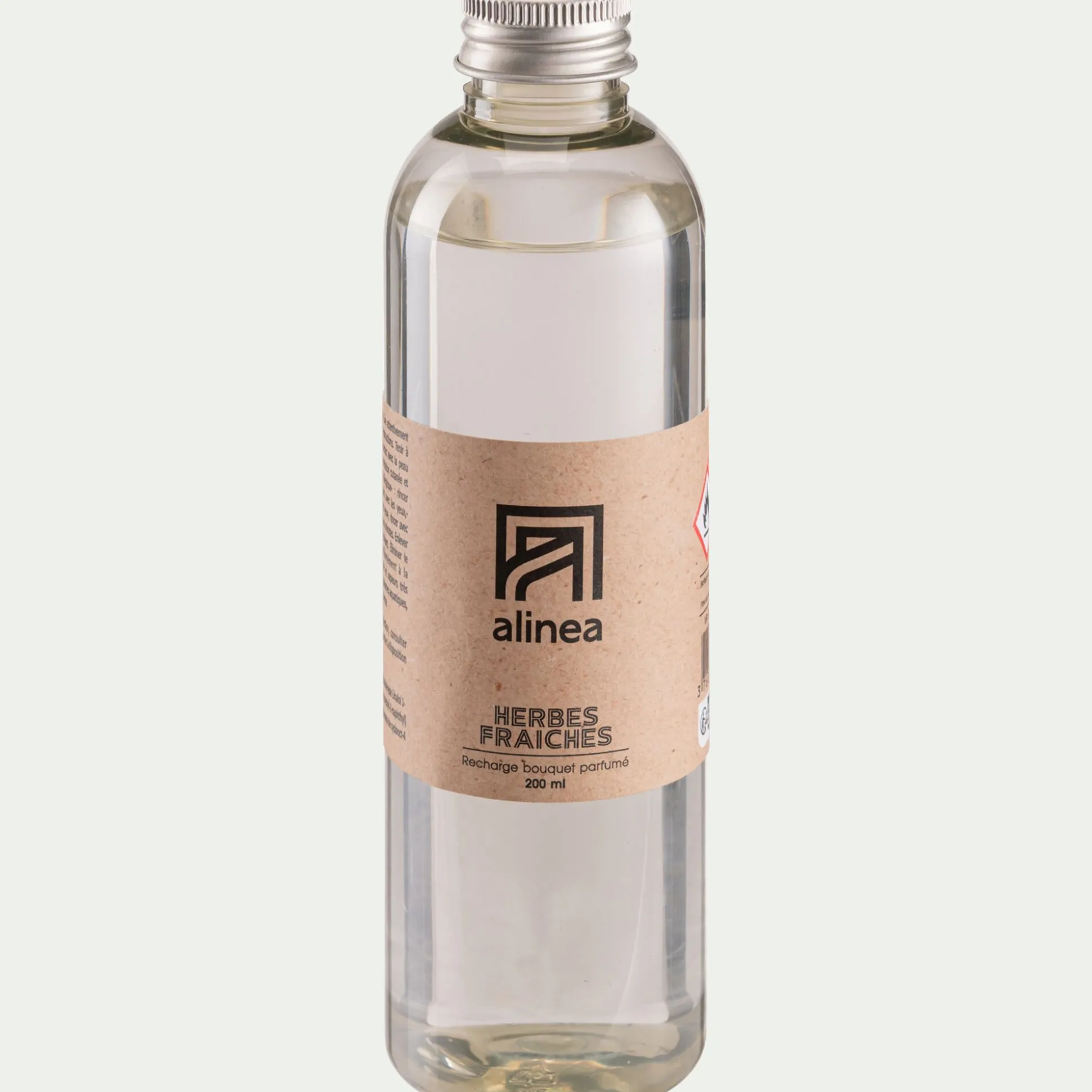 Cette fragrance délivre un bouquet aux effluves frais et doux. Aux notes vertes s’entremêlent des notes d’herbes fraîches, trèfles et fleurs sauvages. Cette senteur est librement inspirée de la prairie. Une escapade printanière et le parfum vert des feuilles. Comme toutes nos fragrances by alinea, ce parfum d’ambiance est élaboré et fabriqué en Provence. Laissez-vous séduire par la recharge senteur Herbes fraîches pour apporter une atmosphère unique à votre intérieur.