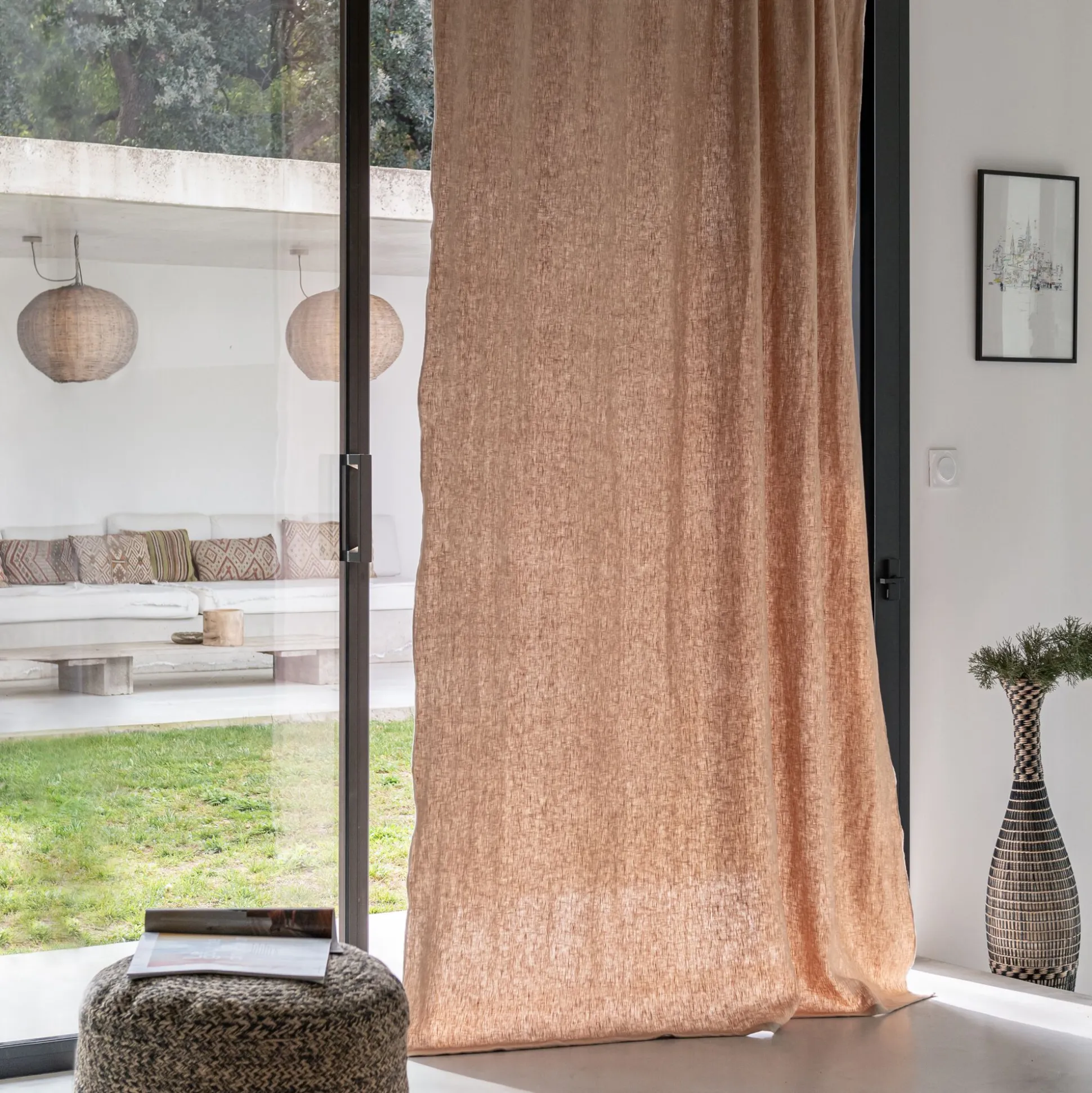 Habillez vos fenêtres de leurs plus beaux atouts avec le rideau Bonnieux. De 140×250 cm, ce rideau respire la douceur de vivre. Confectionné en lin, il arbore une étoffe souple et authentique, marquée par un léger froissé. Cette texture naturelle confère à votre décoration un côté doux et apaisant. L’atmosphère se drape de ce coloris chaleureux, une nuance de beige qui se veut simple et élégante. Ce rideau en lin s’installe en quelques secondes grâce à ses 10 pattes cachées. Ce système d’attache permet de dissimuler la tringle et ainsi de mettre en valeur la finition point de bourdon blanc en surjet.
