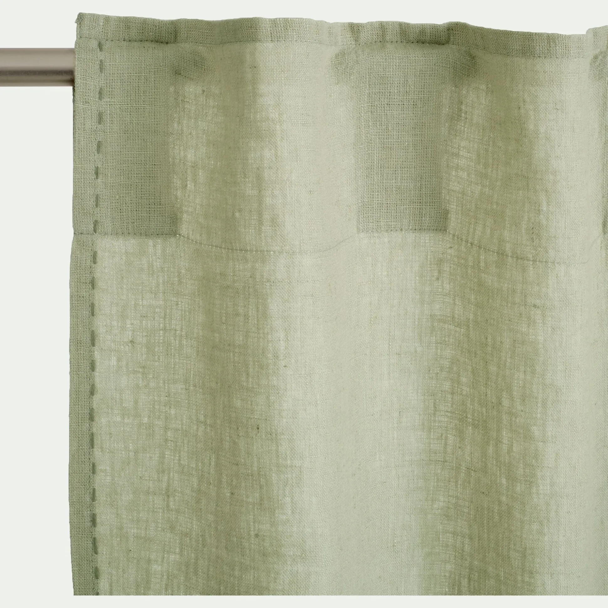 Le rideau Vinon tient son nom d’un agréable petit village au cachet provençal. Niché dans les gorges du Verdon, il se distingue par la nature opulente qui l’entoure. Ce rideau en lin lavé s’installe à vos fenêtres comme un petit bout de ce beau paysage. Tissé en fibres naturelles, ce rideau à passants cachés arbore notre coloris vert olivier, une nuance apaisante qui évoque la nature, mais aussi la douceur de vivre. Ce rideau de 140×260 cm se distingue par une finition réalisée à la main : une surpiqure point plat en double fil qui vient souligner son drapé et apporter une touche d’élégance.