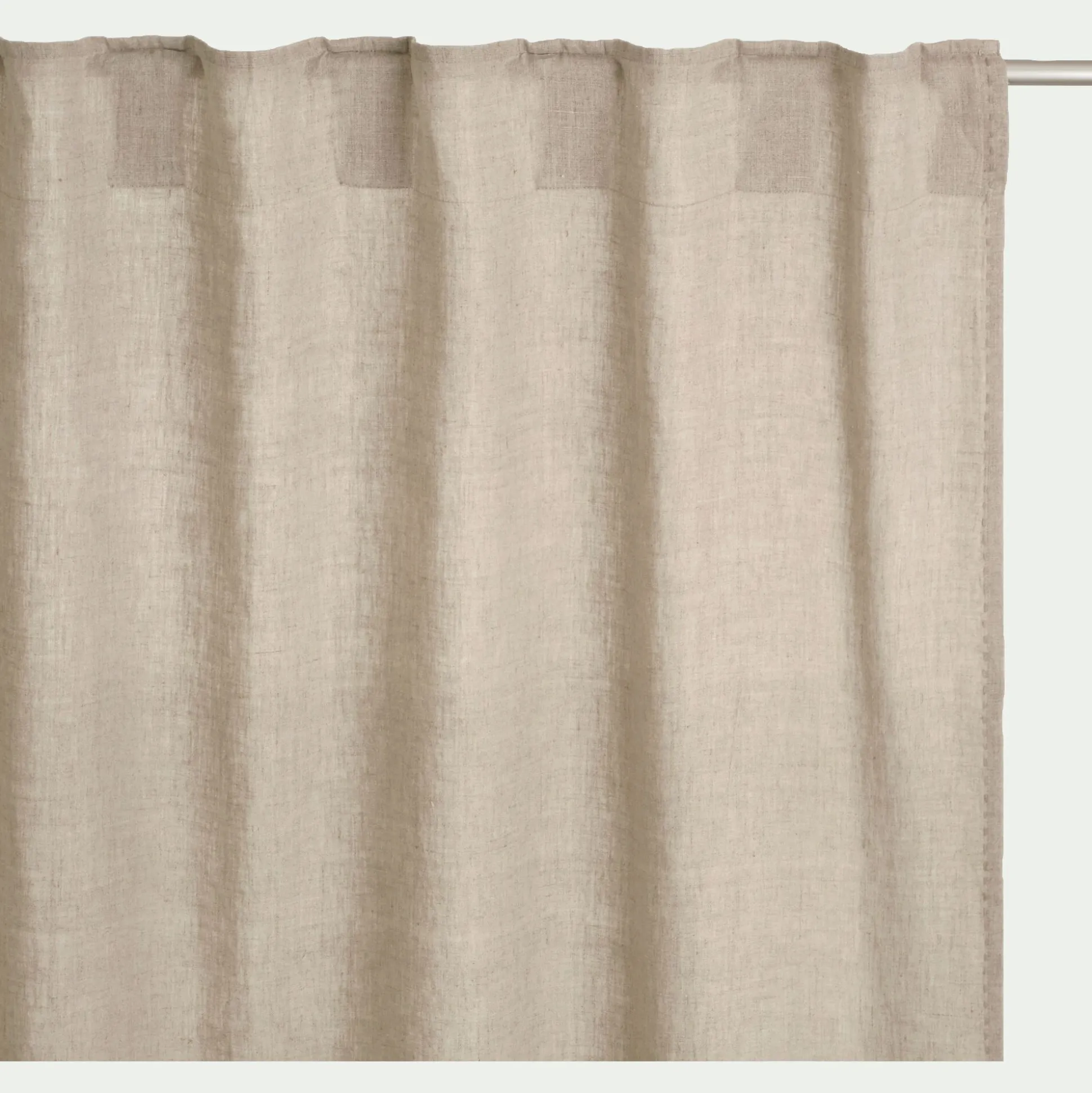 Sublimez vos fenêtres avec le rideau Vinon, un accessoire décoratif élégant à disposer sur une tringle dans le séjour ou encore dans la chambre. Ce rideau de 140×300 cm affiche un design simple et raffiné. Son étoffe en lin lavé apporte une belle texture à votre espace. Uni, ce rideau naturel exprime une modernité vaporeuse, idéal pour un intérieur accueillant et reposant. Cette belle patine beige est soulignée par une surpiqure, une finition minutieuse réalisée à la main.