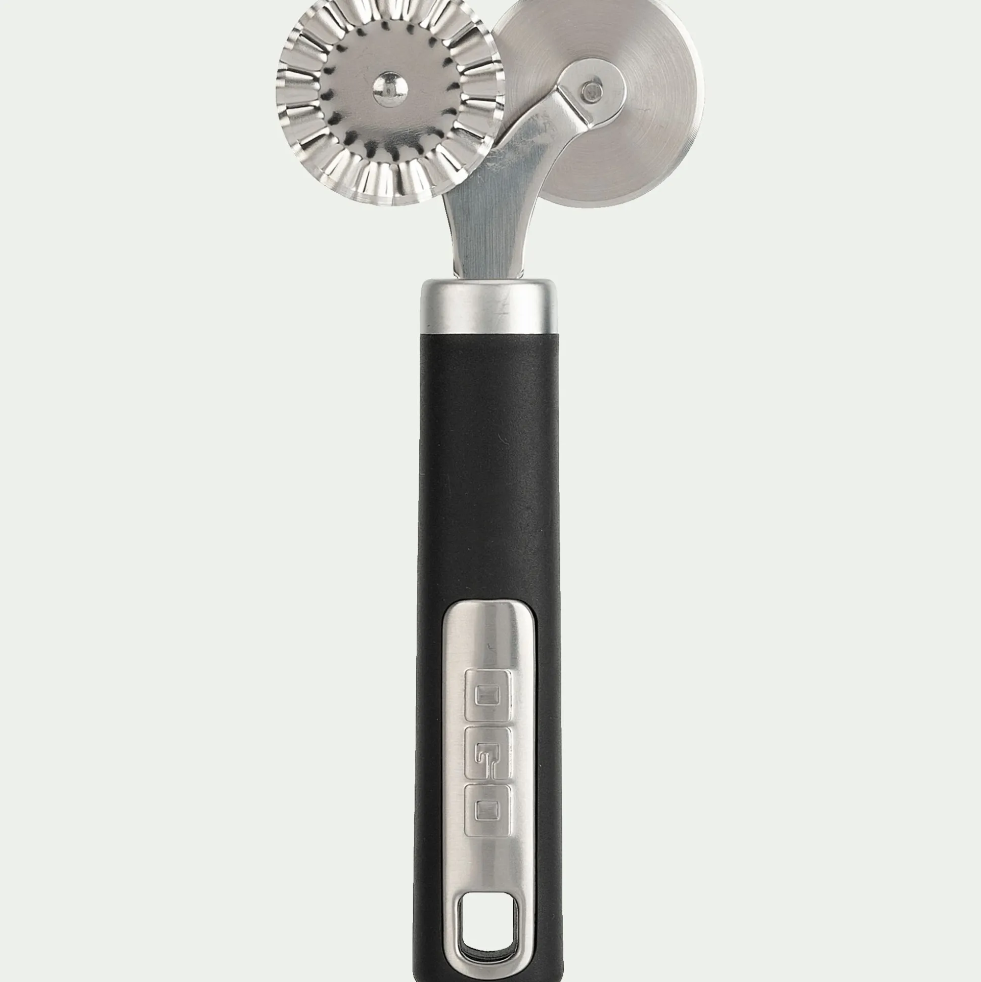 Les deux fonctionnalités de cette roulette à pâtisserie vous permettent d’un côté de découper votre pâte. La deuxième roulette quant à elle dessinera vos biscuits ou ravioles grâce à sa lame ondulée. Sa composition en acier inoxydable vous facilite l’entretien grâce à sa résistance au lave-vaisselle.