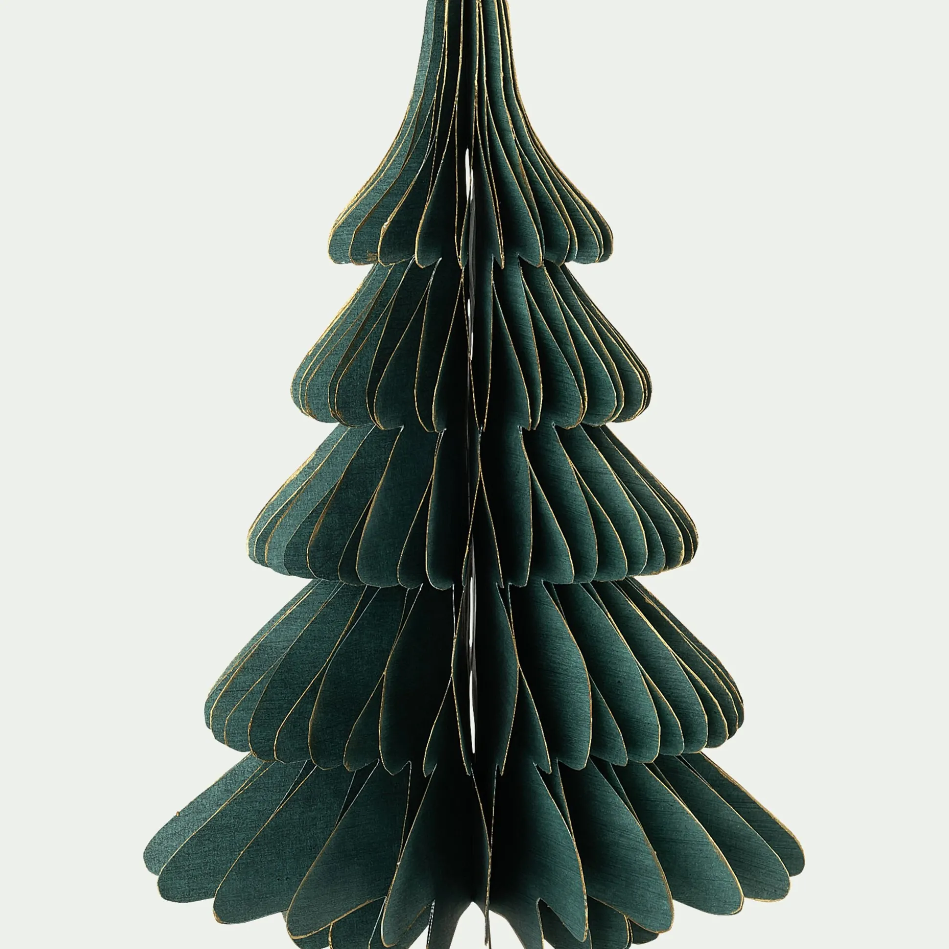Le tendance de l’origami s’invite à vos fêtes de famille ! Entre tradition et avant-gardisme : le petit sapin Alpilles. Ce petit sapin déco est fabriqué à partir de papier. Ce dernier est plié savamment pour obtenir cette reproduction miniature. D’une couleur vert forêt, ce sapin décoratif convient parfaitement aux fêtes de Noël. Suspendu dans l’arbre ou encore posé sur le chemin de table, ce petit sapin vert participe à l’atmosphère magique de Noël qui fait briller les yeux des enfants.