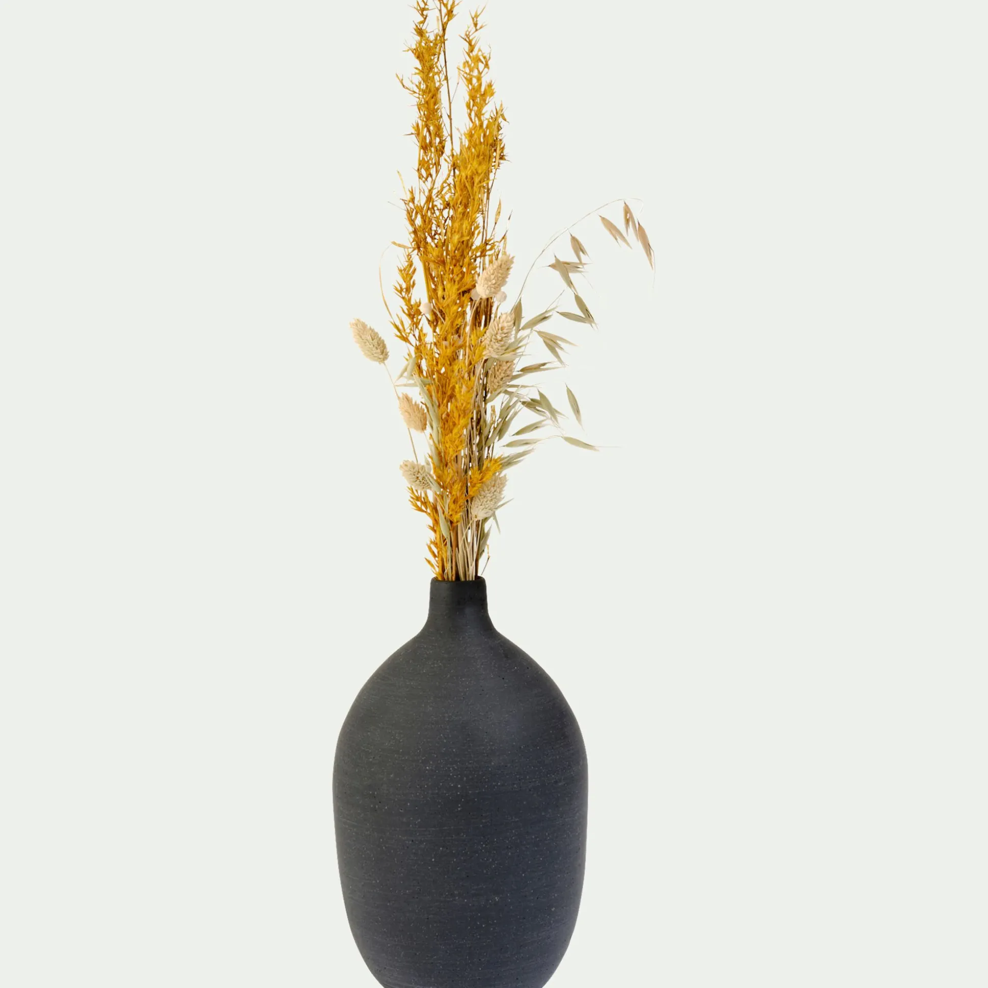 Au charme très contemporain, le vase Calcis revisite le style des amphores grecques. Reprenant les lignes de base de ces céramiques anciennes, il ajoute de la modernité grâce à sa couleur ainsi qu’à ses lignes bien plus caractéristiques de notre époque. Ce soliflore noir de 15×25,5cm s’accorde parfaitement avec des fleurs séchées ou encore des feuilles de palmier et vous permet de créer une décoration sophistiquée. Associez-le aux autres vases de la même collection afin de créer une harmonie parfaite et d’apporter un côté moderne à votre pièce.