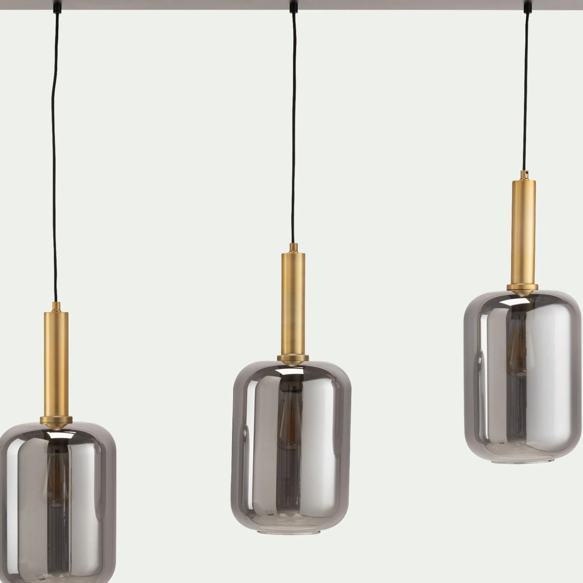 Cette suspension apportera une touche d’élégance et d’authenticité à votre intérieur. Ce luminaire est muni de trois globes suspendus avec style à la plaque de montage. Ces globes en verres fumés offriront un charme supplémentaire aux ampoules que vous aurez choisi. Optez pour un format d’ampoule différent, cela apportera du dynamisme à cette suspension. Pour profiter pleinement de la magie, nous vous recommandons des ampoules filaments.