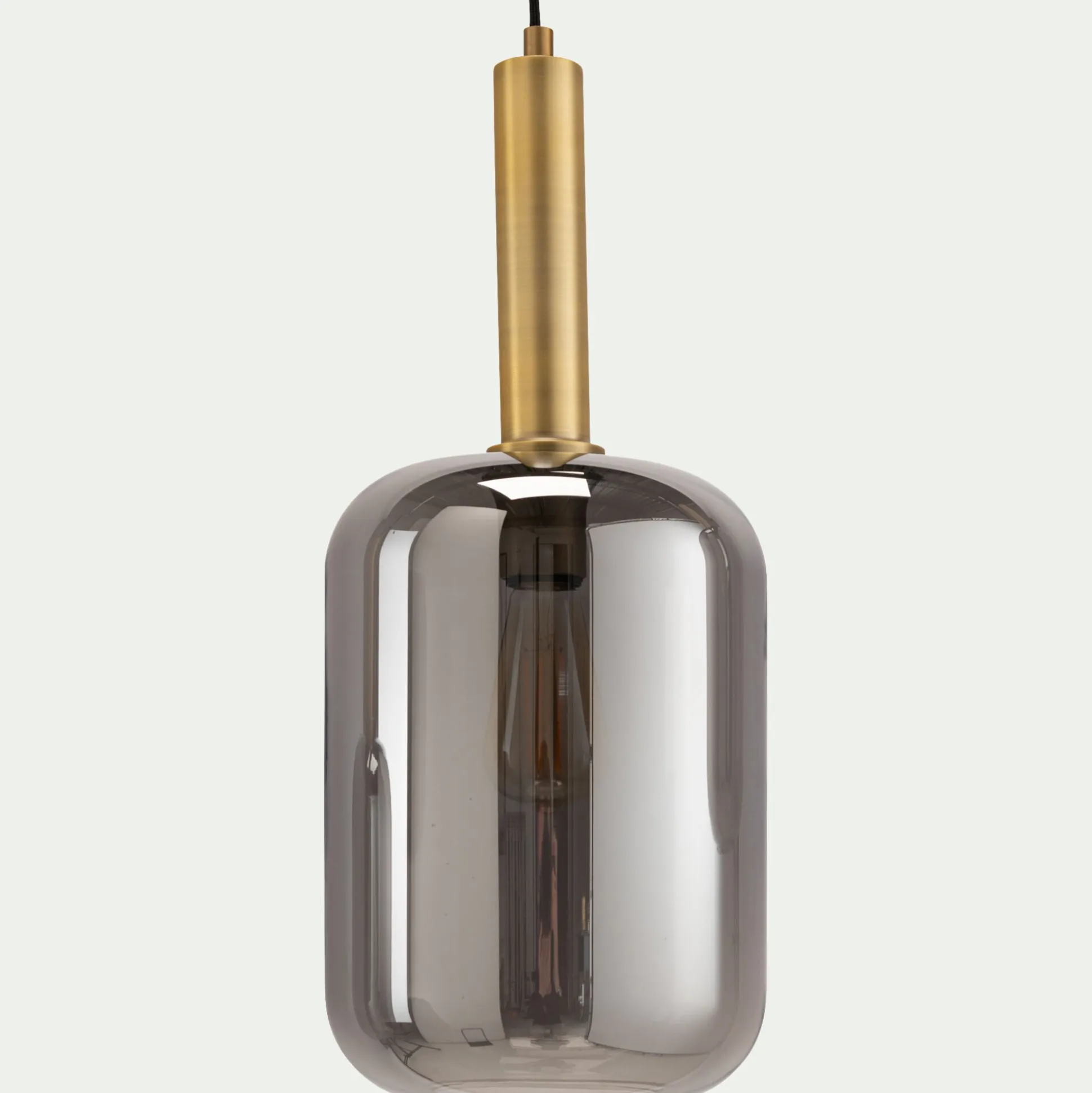Abat-jour : Verre fumé avec bague en laiton doré mat.