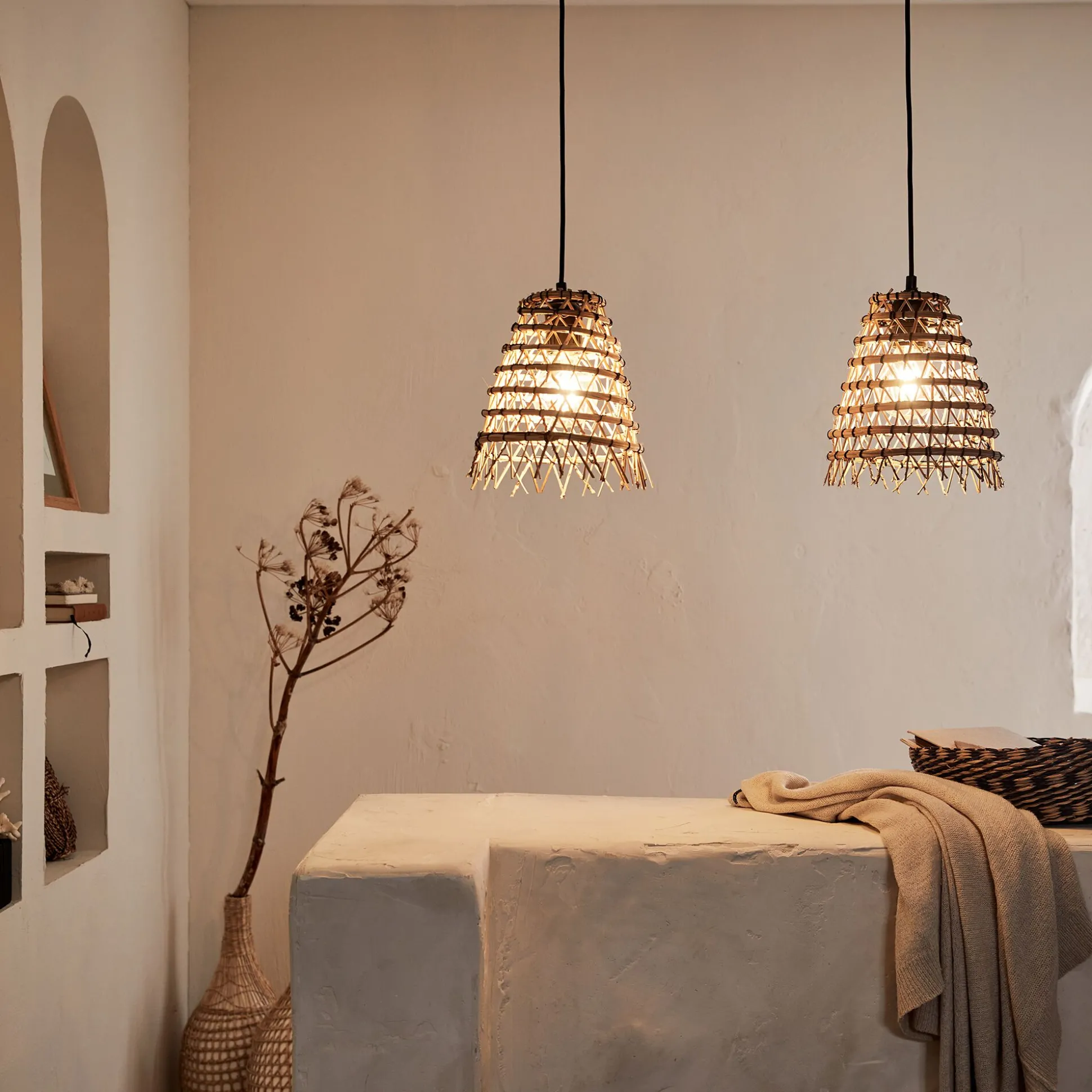 Une jolie suspension en fibre de palmier pour décorer votre intérieur. Un abat-jour entièrement réalisé à la main en Tunisie pour que chaque produit soit unique. Il apporte une touche naturelle et authentique à votre foyer. Ajoutez une jolie ampoule déco de lumière chaude pour une ambiance exotique et tamisée.