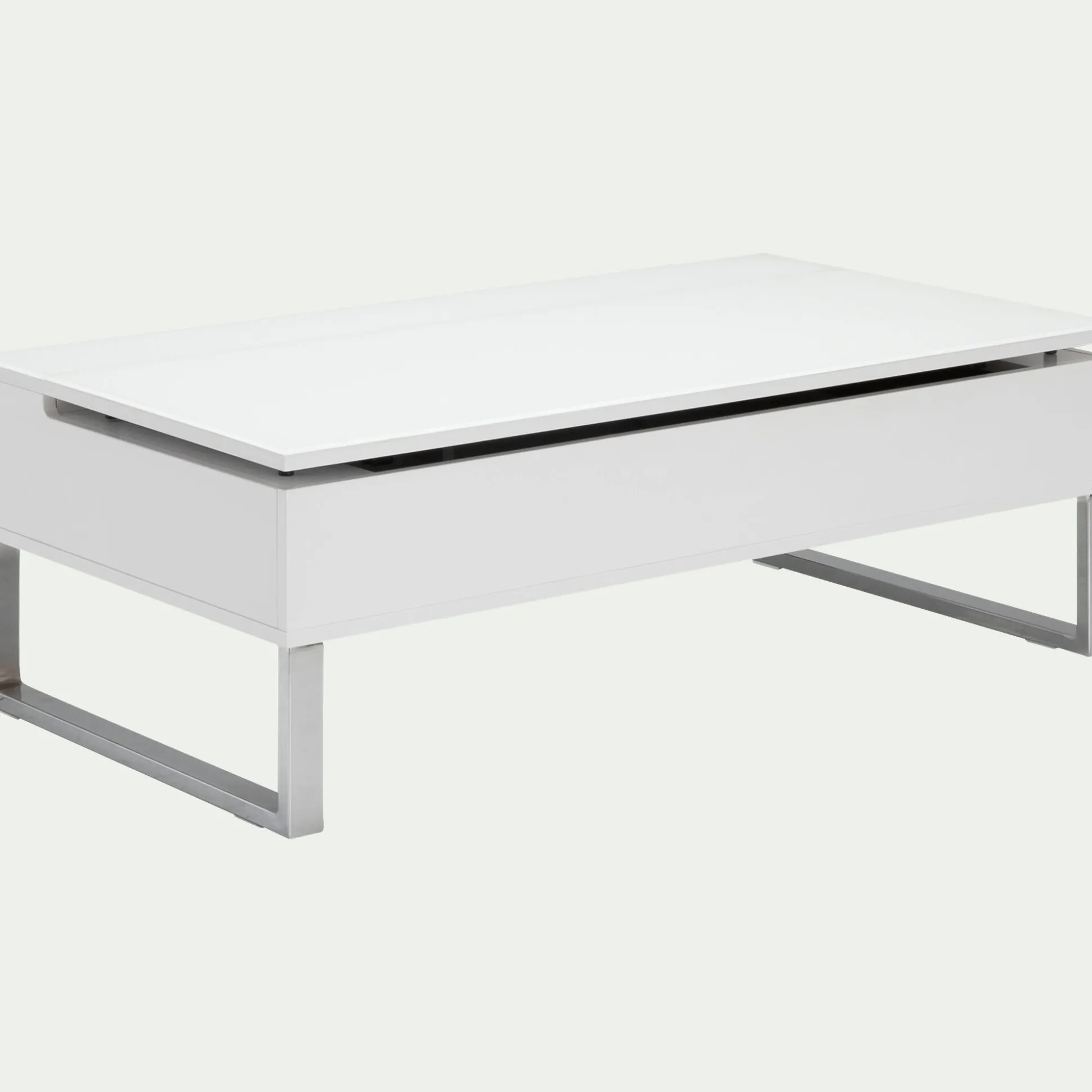 Cette table basse blanche avec tablette relevable vous offre un vaste espace de rangement très appréciable pour stocker télécommandes et magazines. En position haute, sa tablette fera office de table de repas pour 2 personnes. Ce meuble de salon est donc très pratique pour aménager les petits espaces de type studio ou chambre d’étudiant.