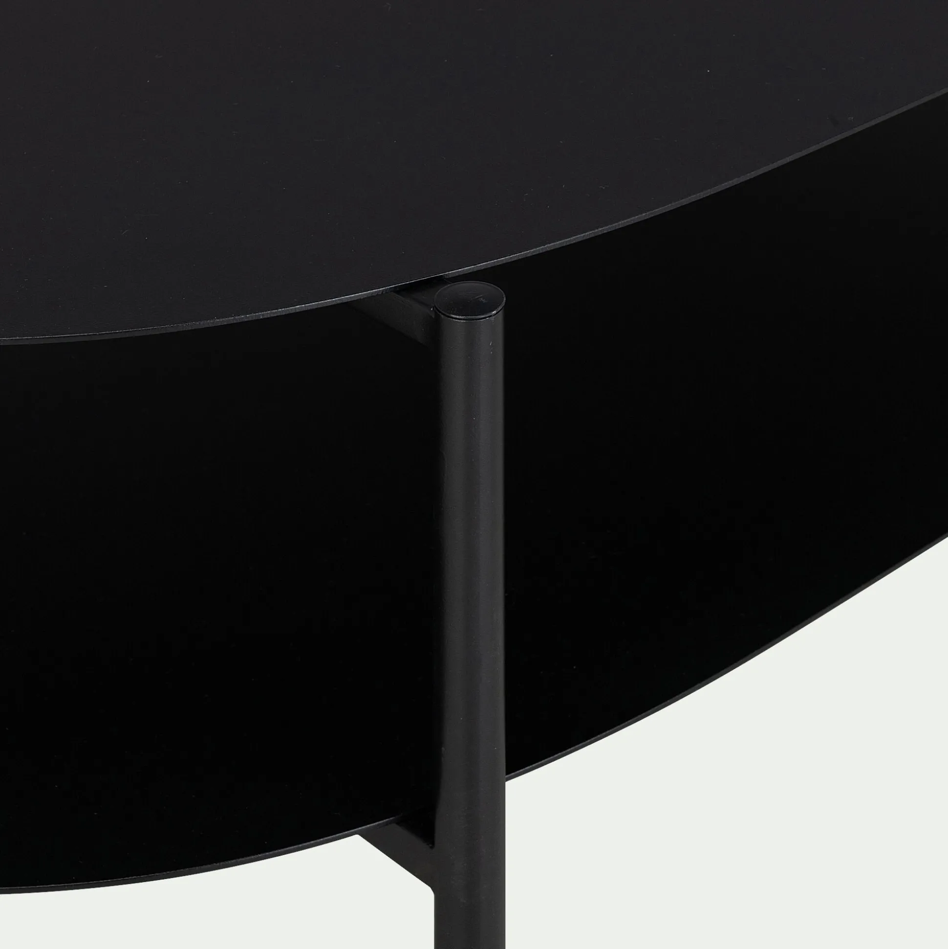 Cette élégante table basse en métal noire est idéale pour un salon moderne. Ses deux plateaux vous offrent un espace pour ranger vos effets tout en disposant d’une table libre au dessus. Vous pourrez ainsi profiter pleinement d’apéritifs dinatoires en famille ou entre amis. Une table au coloris noir mat et à la forme organique asymétrique qui arbore un style contemporain et chic. Elle saura être la pièce centrale de votre salon, trônant fièrement sur un beau tapis, face à votre canapé.