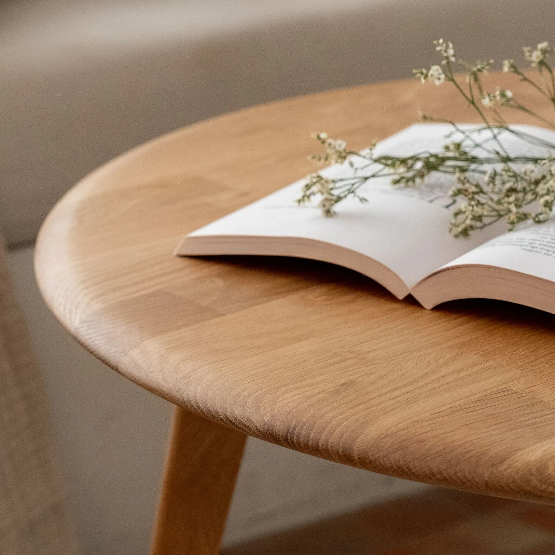 Lagos est une petite table basse pensée pour convenir à tous les styles d’intérieur. D’une grande simplicité, elle se présente sous la forme d’un plateau rond et de trois pieds. L’ensemble est fabriqué dans du bois massif et plus particulièrement dans du chêne. Cette essence de bois est reconnue pour être résistante. Elle offre à ce meuble de salon un coloris clair, arboré de quelques veinures plus sombres pour un rendu naturel. Cette table basse ronde est ensuite vernis pour assurer sa longévité. De 46 cm de hauteur, cette table basse en chêne se combine aux deux autres tables Lagos pour un rendu gigogne.