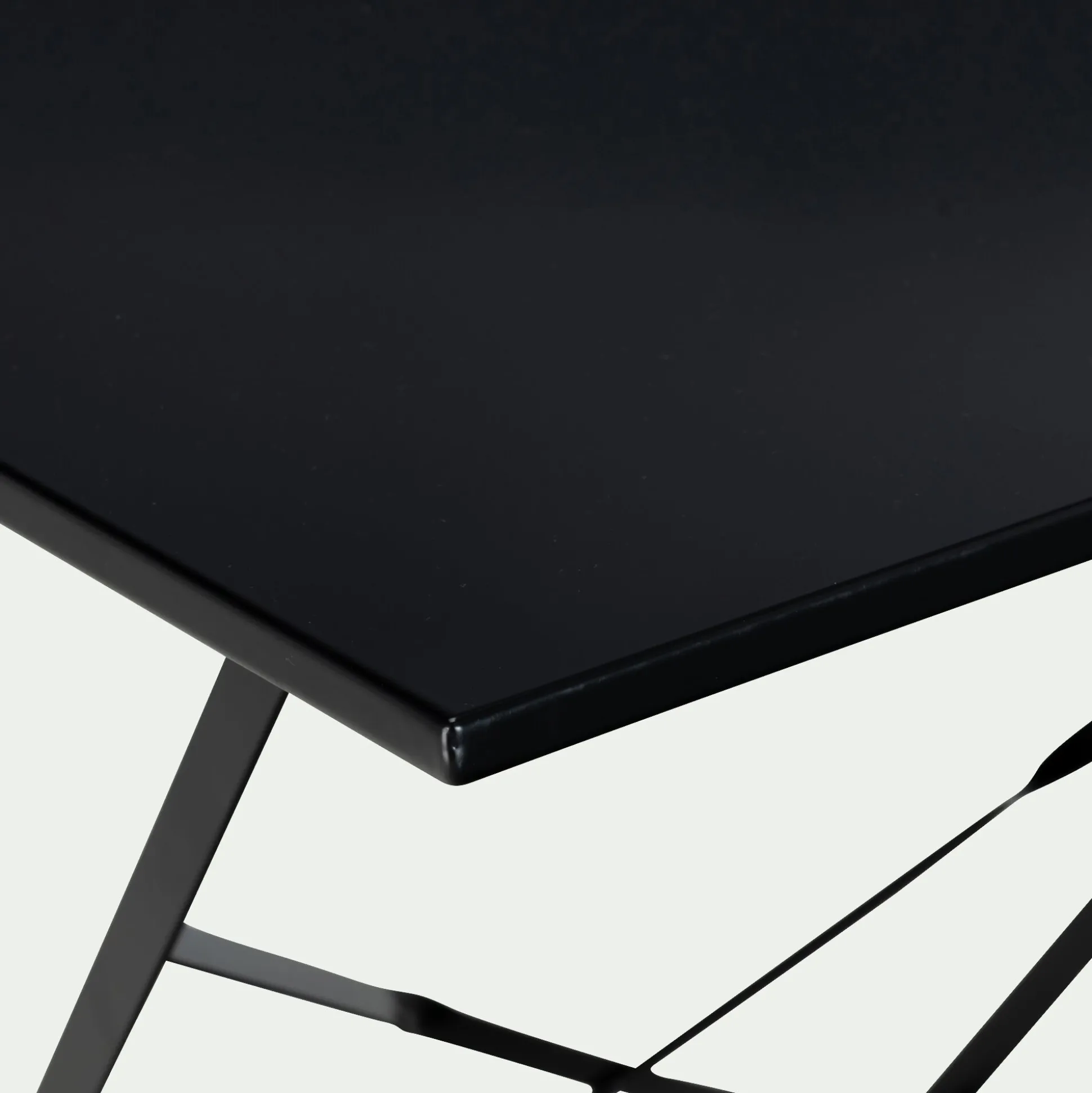 La collection Cervione au style intemporel rappelle les terrasses des cafés, synonymes de détente et de partage. Cette table carrée noire est parfaite pour aménager un coin repas extérieur intimiste. Elle est idéale pour les petits espaces tels que les balcons ou les petites terrasses. Créez un bel ensemble avec les chaises de jardin de la même collection et de la même couleur. Très pratique, tout le mobilier de cette gamme est pliable et peut donc être facilement rangé. Les tables et les chaises Cervione existent en plusieurs coloris, pouvant être mixées au grès de vos envies, et en plusieurs tailles selon votre besoin.