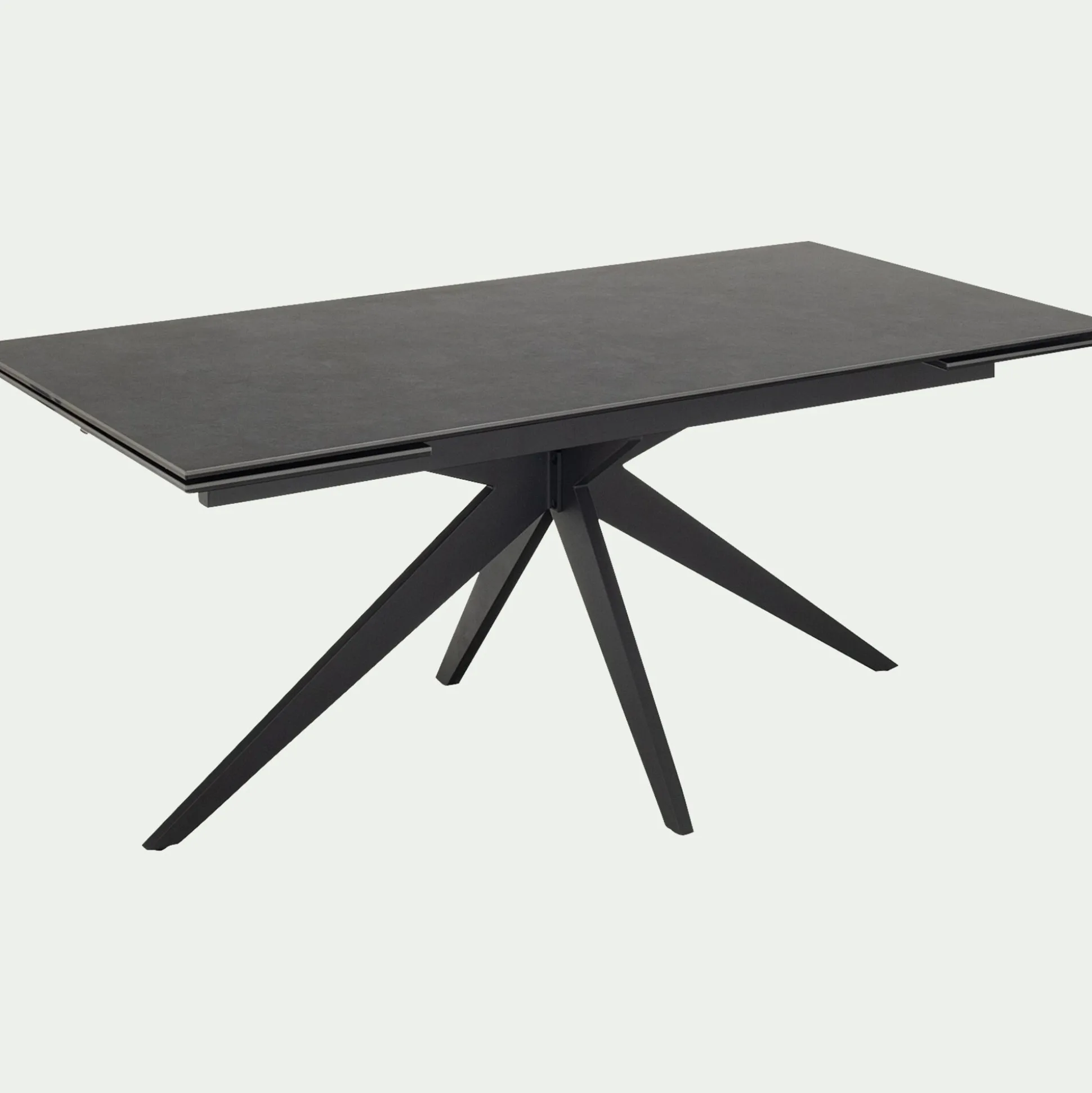 Avec son design contemporain tout en noir, cette table de repas extensible allie élégance et fonctionnalité. Son plateau associe la résistance de la céramique à la solidité du verre trempé, tandis que son piètement en métal dessine une silhouette graphique et moderne. Longue de 180 cm au quotidien, elle s’adapte aux grandes tablées grâce à deux rallonges indépendantes pour atteindre jusqu’à 260 cm. Faciles à mettre en place, elles permettent d’accueillir confortablement jusqu’à 10 convives. Une table aussi belle que pratique pour recevoir sans compromis.