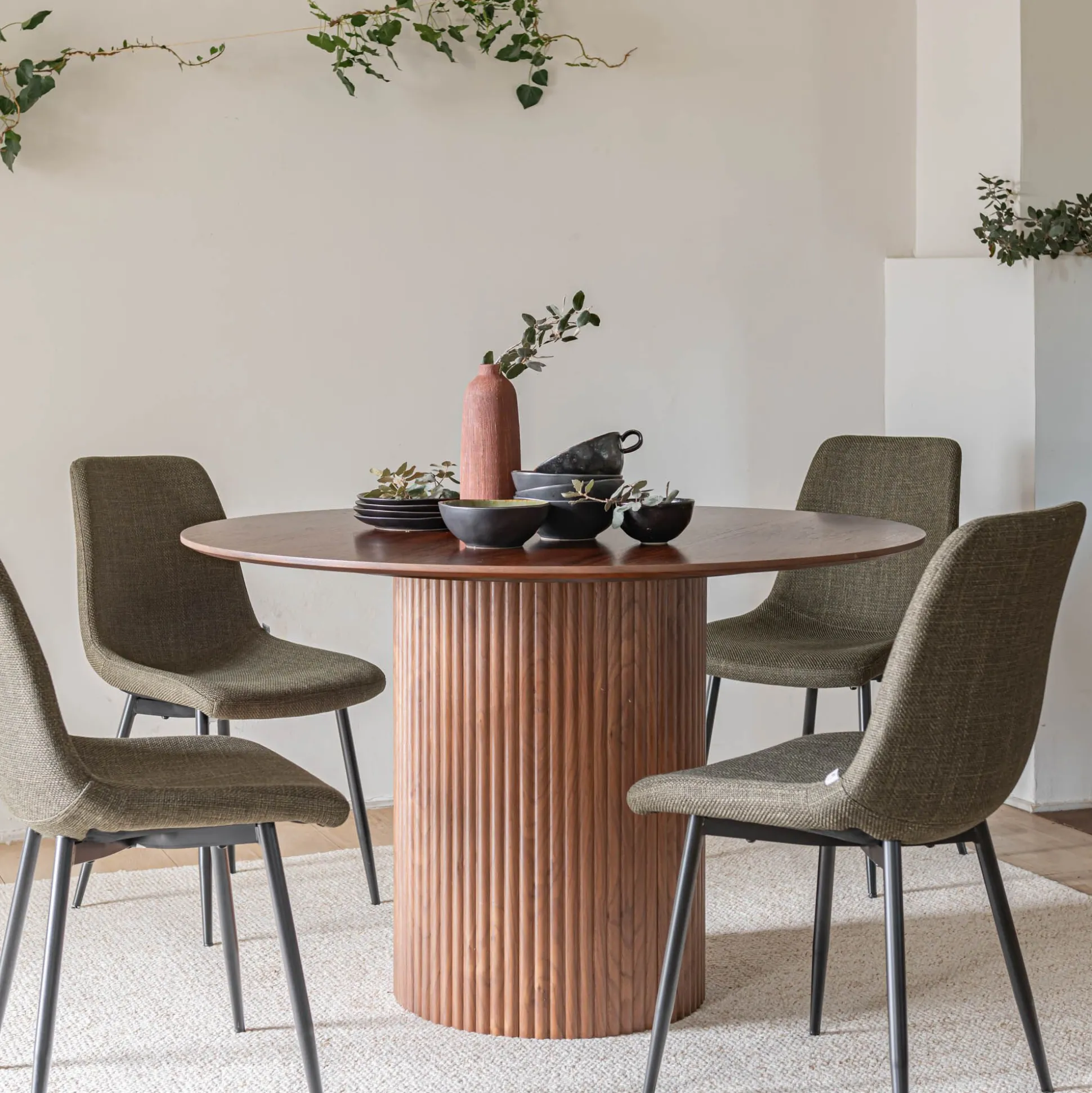 Cette table de repas ronde incarne l’élégance et la convivialité, offrant un espace harmonieux pour réunir 4 à 6 convives. Son bois foncé, certifié FSC, exprime un engagement durable et une beauté naturelle, tandis que le pied central, subtilement strié, apporte du relief et de la texture. Parfaite pour sublimer un intérieur contemporain, cette table ronde en bois allie la chaleur de la matière naturelle à un design moderne, créant un espace de partage de caractère.