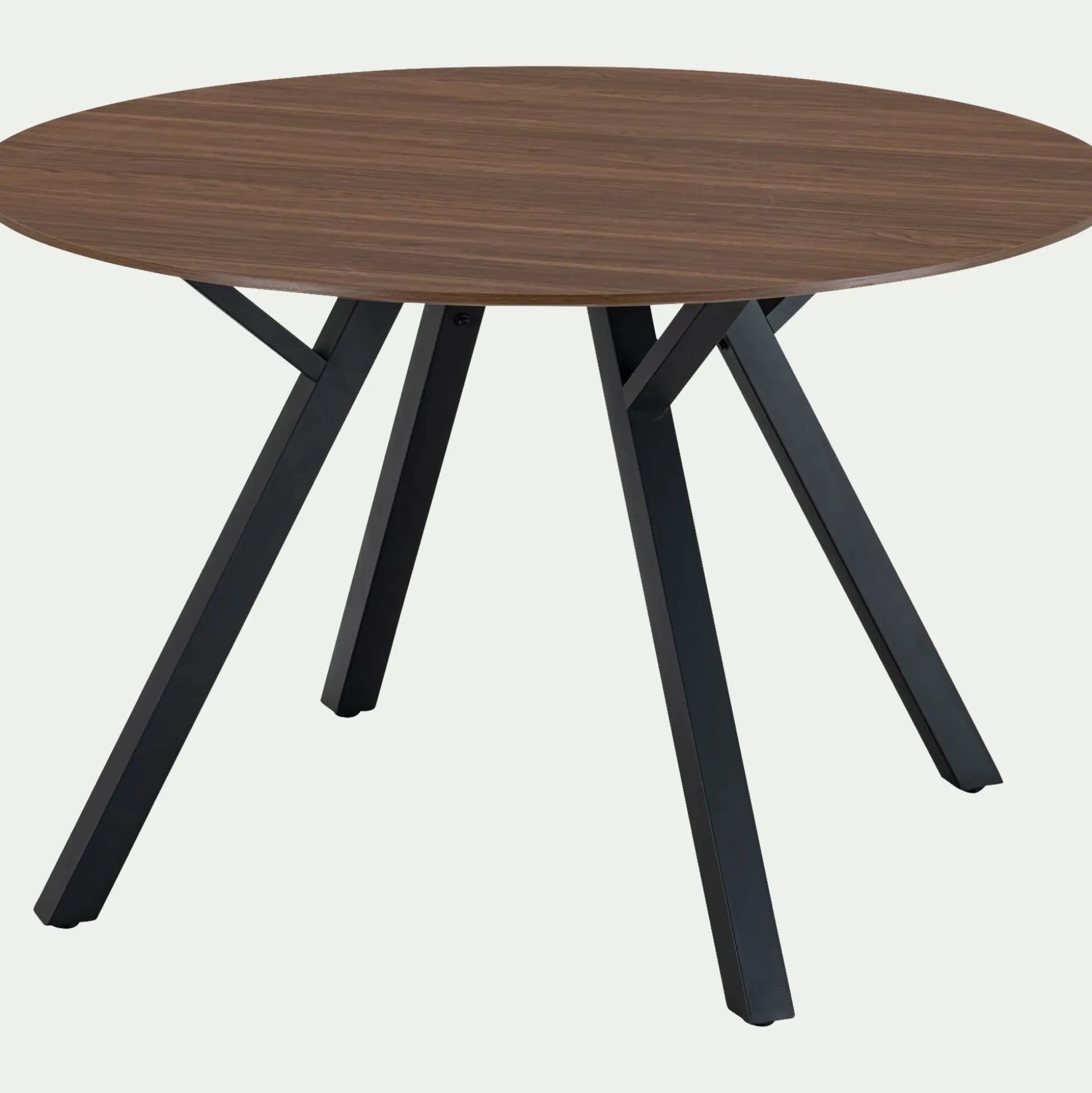 Avec son piètement en métal noir et son plateau rond en bois foncé de 120 cm de diamètre, cette table de salle à manger impose son style industriel. Sa palette sombre et ses lignes épurées créent une ambiance brute et contemporaine, parfaite pour un intérieur au caractère affirmé. Conçue pour accueillir de jusqu’à 6 personnes, cette table de repas allie convivialité et déco autour d’un design robuste et élégant.
