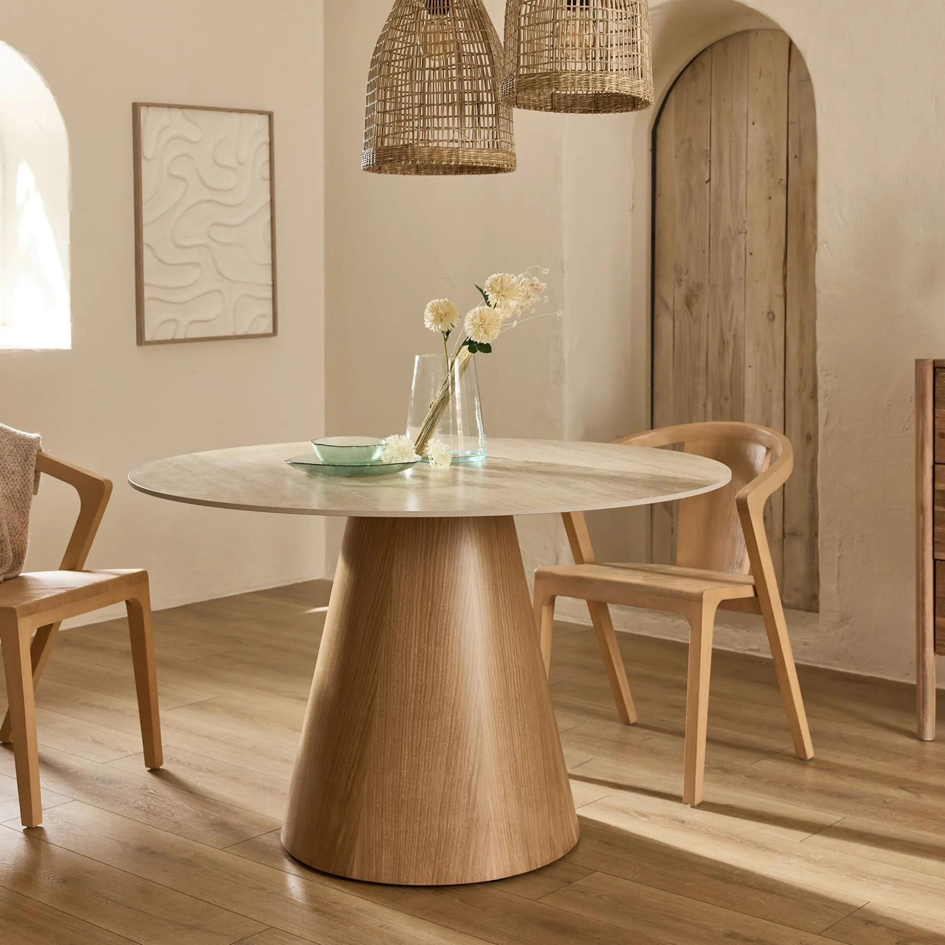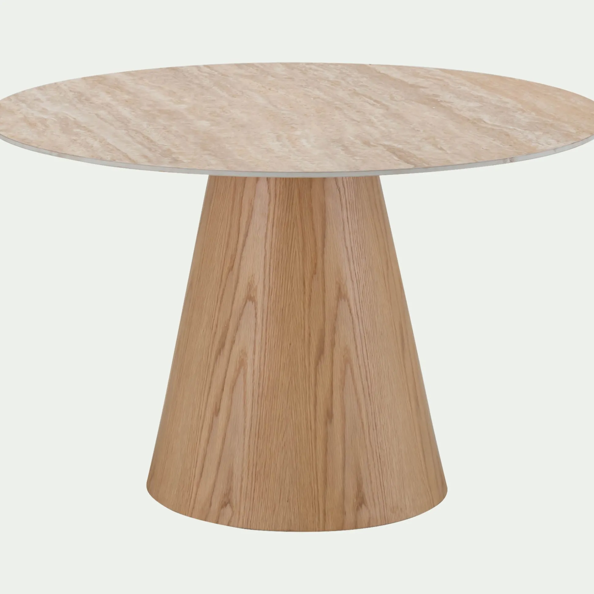 Table de repas ronde en bois et céramique – bois clair (4 à 6 places)