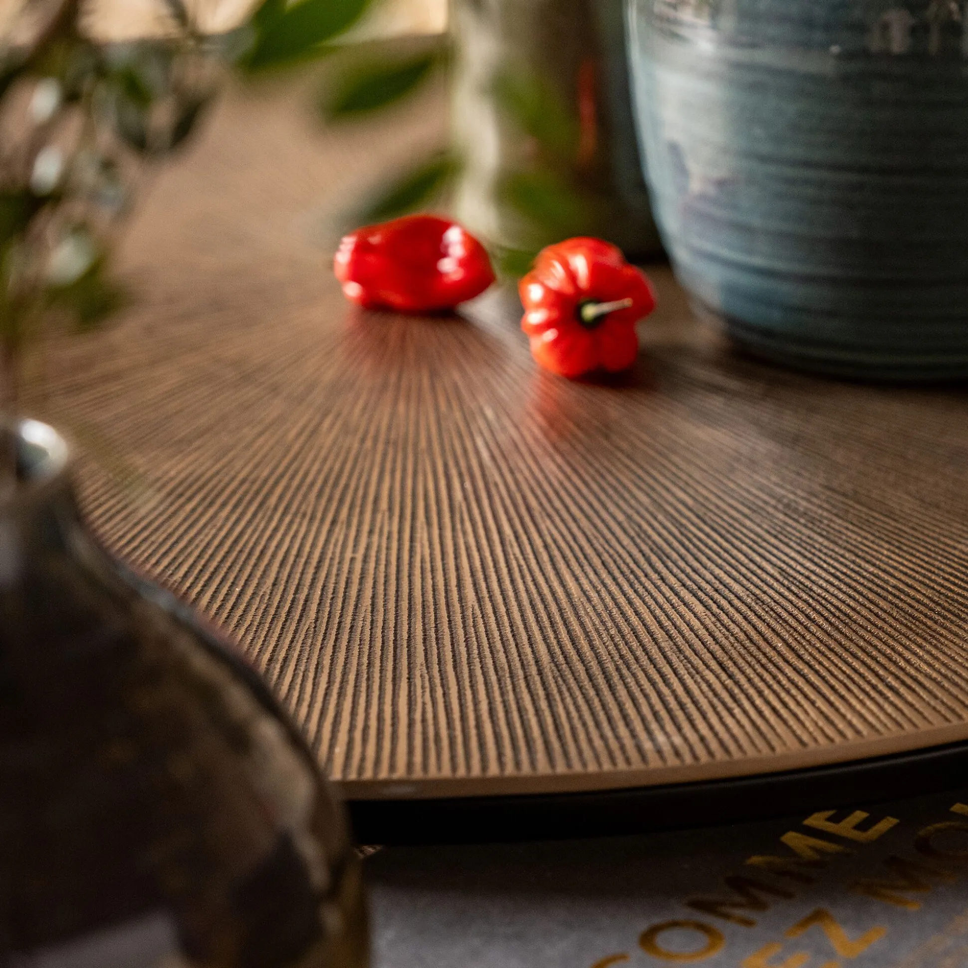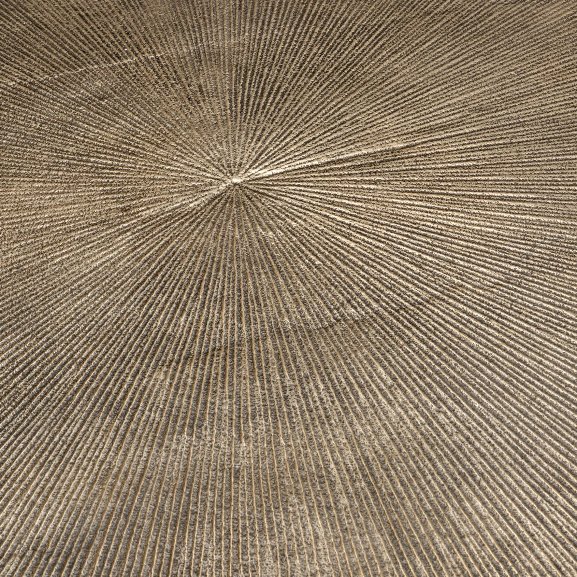 Cet ensemble de deux tables basses gigognes marie avec élégance le raffinement et la fonctionnalité. Chaque table présente un plateau rond orné de stries en relief, créant un motif qui captive le regard. Le plateau, au coloris doré patiné, évoque un esthétique vintage et sophistiquée, semblant témoigner du passage du temps avec élégance. Posées sur des piétements en métal noir, ces tables renforcent le caractère contemporain du salon.