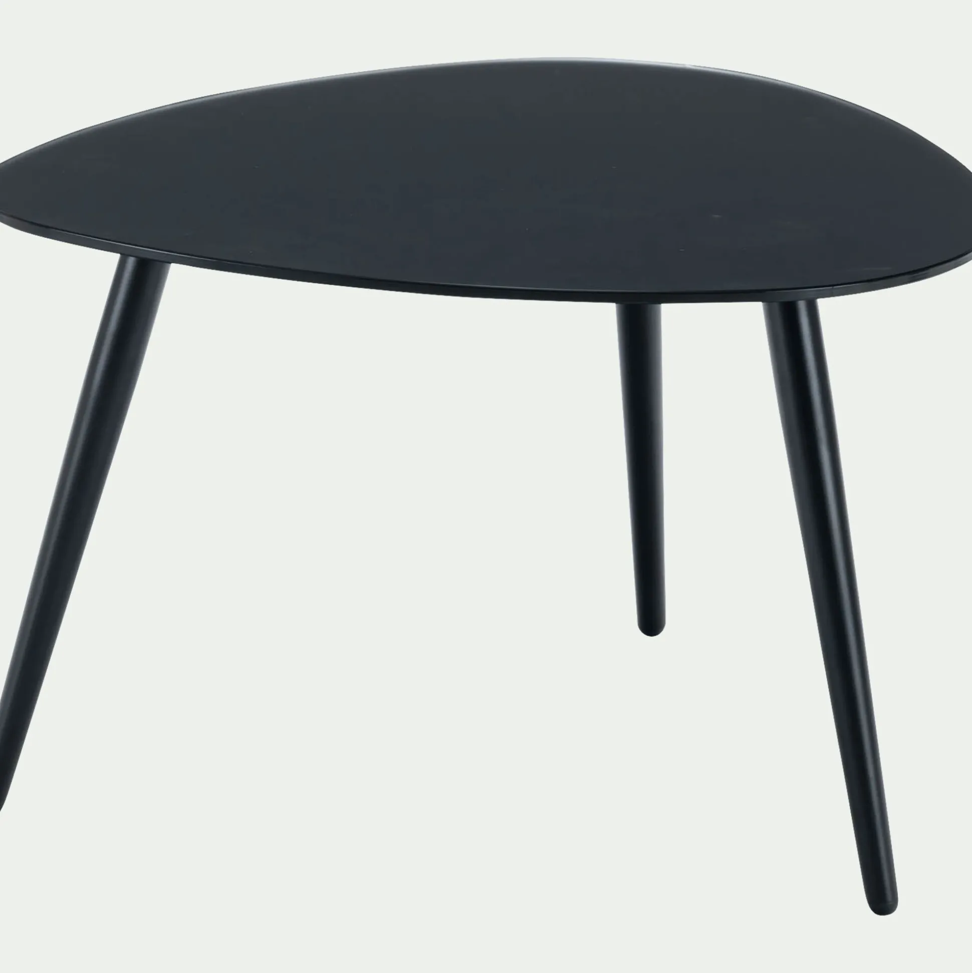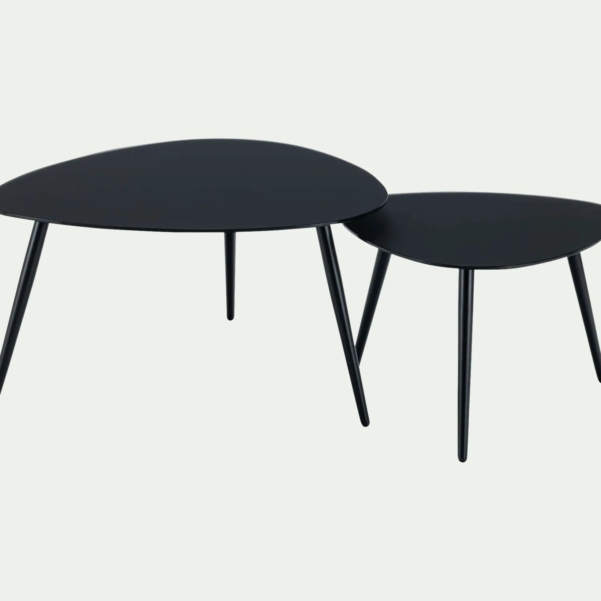 Envie de donner du caractère et du volume à votre salon ? Ces deux tables basses gigognes sont faites pour vous ! Leur look contemporain et brut, associé à un robuste piètement en tube en acier, en fait des pièces uniques. Chaque table est surmontée d’un élégant plateau en verre trempé avec une finition de peinture noire, offrant un design original et lumineux. Disposez-les harmonieusement sur un tapis devant votre canapé pour créer un espace convivial et profiter de moments agréables dans votre pièce de vie.