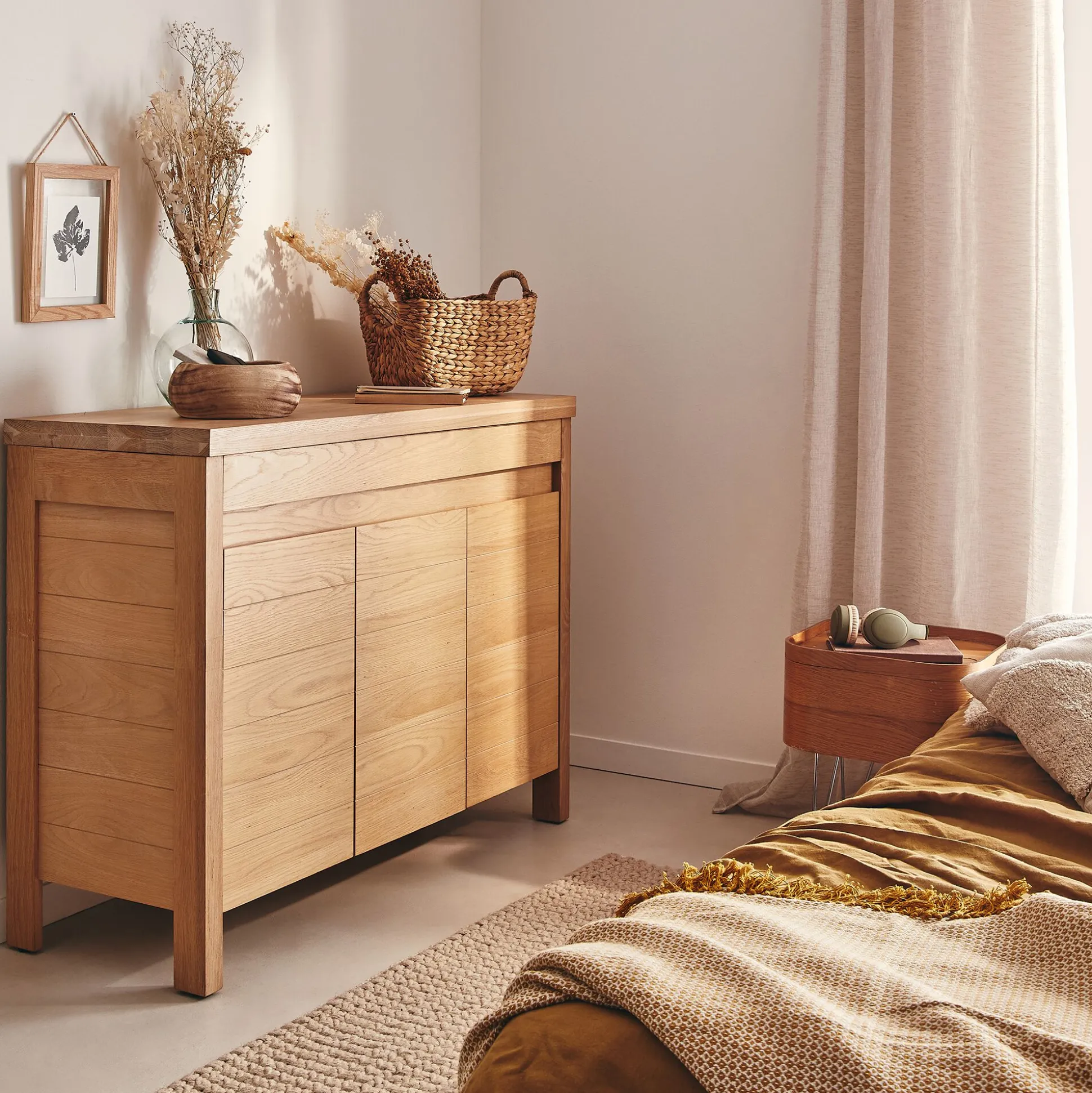 Chêne massif finition lasuré naturel.