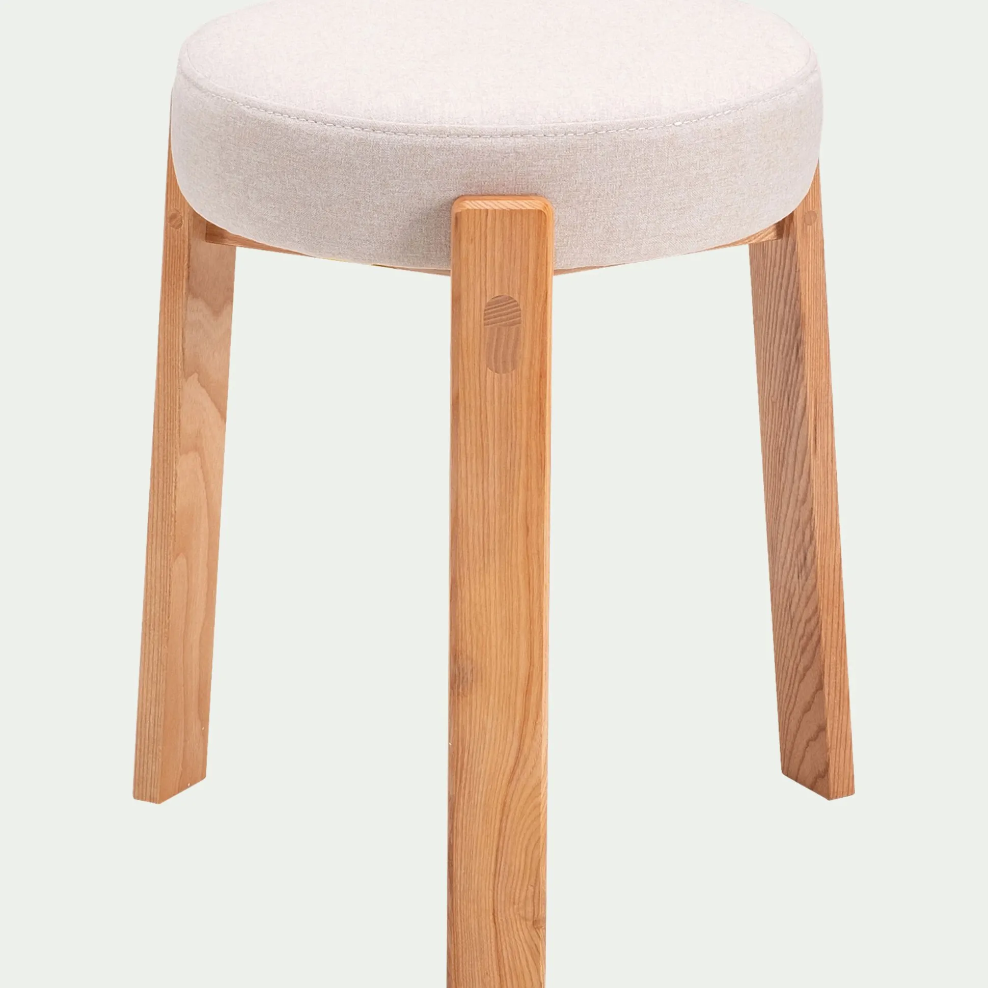 Le tabouret Lunel bi matière est un mélange de bois de frêne et de tissu pour un style contemporain. Le frêne est un type de bois dense qui permet de donner vie à des meubles très robustes. Aussi, ce tabouret est capable de soutenir jusqu’à 110 kg. Le design de ce tabouret en bois est simple : trois pieds soutenant une assise ronde. Ce petit tabouret en bois s’allie aisément à tous les styles de décoration grâce à son coloris alliant le bois clair et le beige alpilles. Il s’utilise comme assise principale dans la salle à manger, assise d’appoint dans le salon ou encore meuble décoratif pour exposer vos décorations à poser et plantes dans toutes les pièces de la maison.