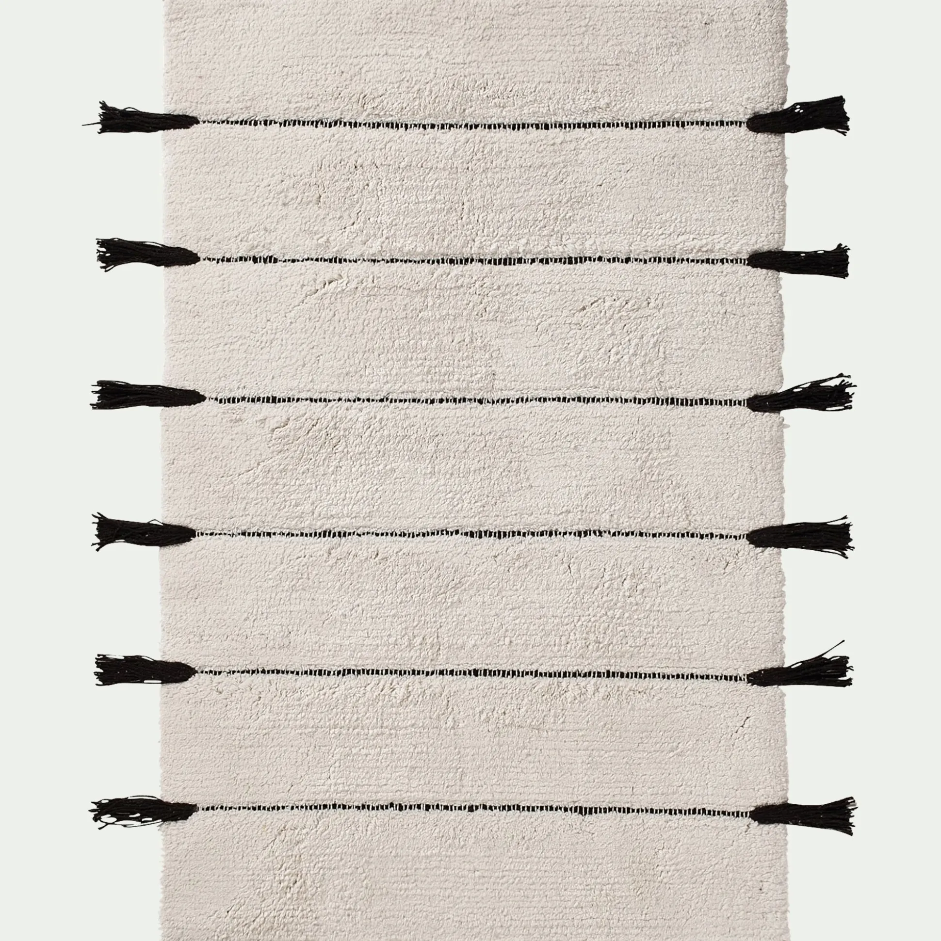 Gourdon est un tapis de bain intemporel, twisté par une petite touche contemporaine. Ce tapis de bain en coton arbore une palette de couleurs épurée. Grand classique, le noir et le blanc se marient à merveille pour donner du contraste à cette pièce. De fines rayures noires parcourent ce tapis de salle de bain. A la fin de leur chemin, elles éclosent en de gros pompons, touche fantaisie qui apporte du volume et du dynamisme. Ce tapis de bain noir et blanc est une décoration moderne, aussi esthétique que pratique.