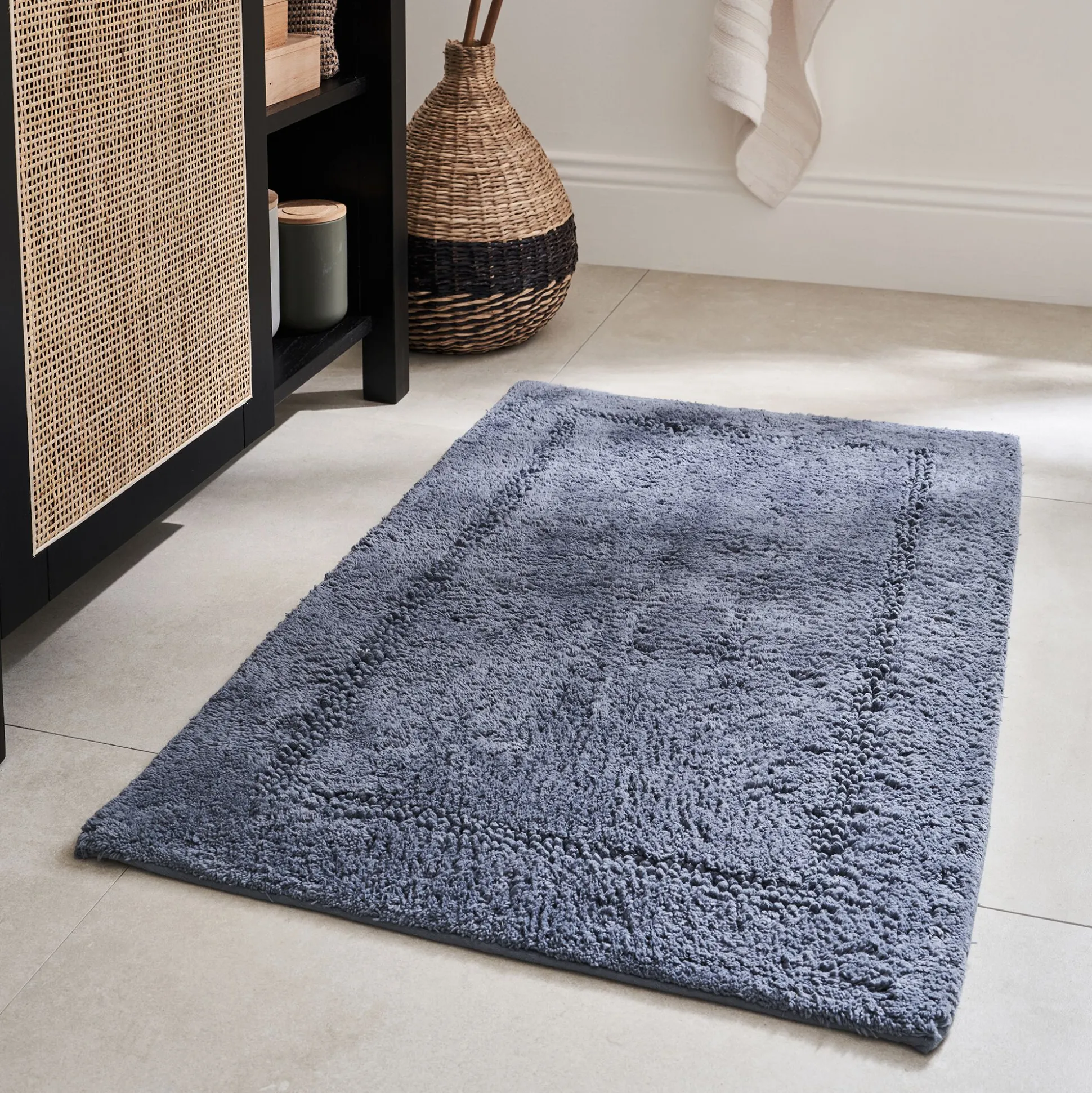 Avec son grammage de 1700 g/m2, ce tapis de bain en coton offre une qualité haut de gamme. Au-delà de son esthétisme et de son confort, ce tapis de bain bleu est résistant et absorbant. Au pied de la douche ou de la baignoire, il vous sert au quotidien pour sécher vos pieds à la sortie de l’eau. Ce tapis de bain uni apporte une touche de couleur à la salle de bain. Le bleu autan inspire la douceur et la sérénité : l’atmosphère parfaite pour cette pièce dédiée au bien-être.