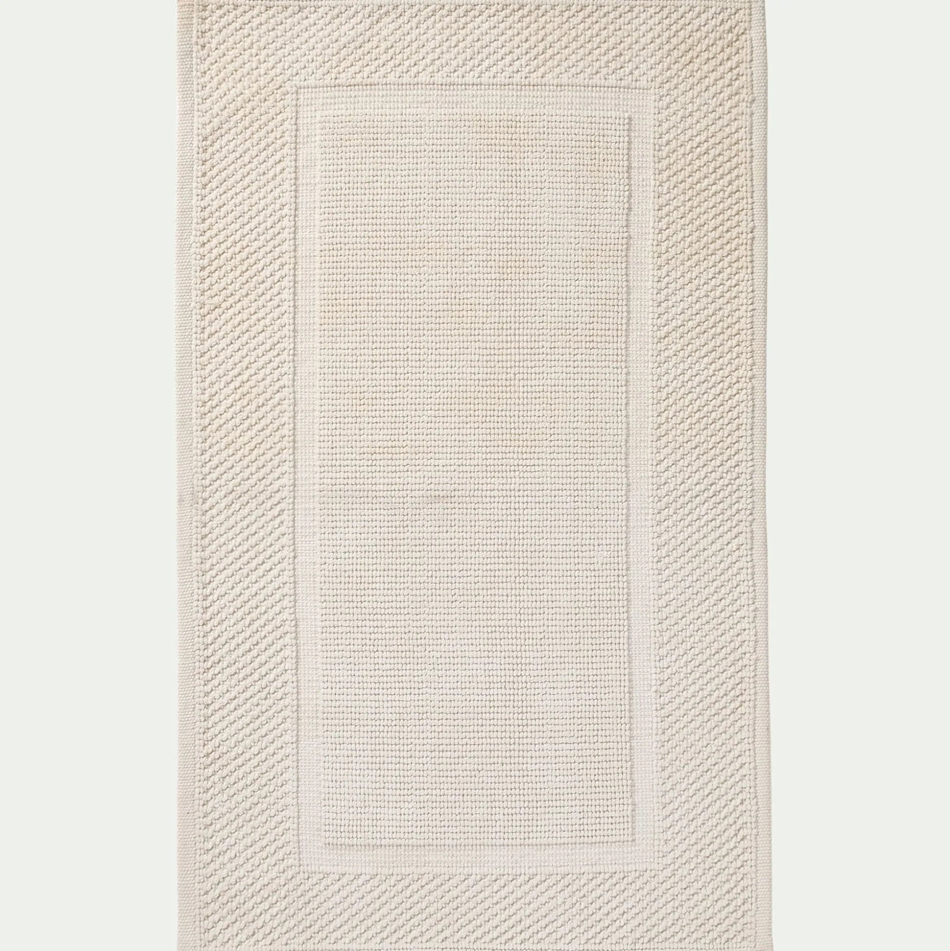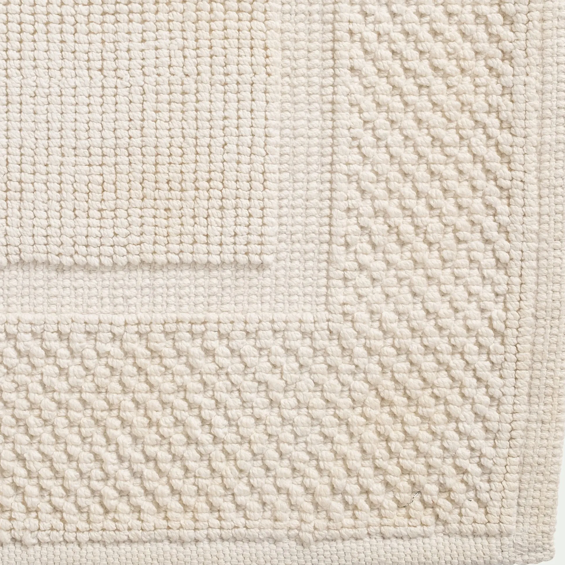 D’apparence simple, le tapis de bain Bagno se distingue par son tissage raffiné. En effet, ce tapis de bain en coton présente un tissu jacquard. En d’autres termes, de jolis motifs tissés viennent décorer ce tapis pour lui offrir texture et volume. Cette élégante finition est rendue possible grâce à un entrecroisement de fils. Un savoir-faire minutieux qui évoque un style vintage. Avec son grammage de 1600 g/m2, ce tapis de bain blanc est très absorbant, un véritable atout pour la salle de bain.