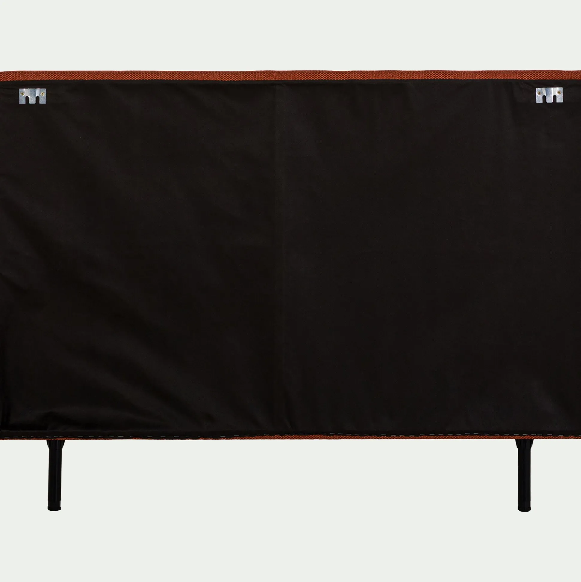 Habillez votre chambre d’une touche de caractère avec cette tête de lit terracotta de 182 cm. Son capitonnage raffiné et sa silhouette épurée apportent une ambiance cosy et contemporaine à la déco de votre chambre à coucher. Conçue en bois massif, rembourrée de ouate et revêtue d’un tissu doux, elle offre un confort enveloppant au quotidien. Réglable en hauteur, elle s’ajuste facilement à votre lit pour un rendu sur mesure. Fabriquée en Roumanie, elle incarne un style intemporel aux finitions soignées.