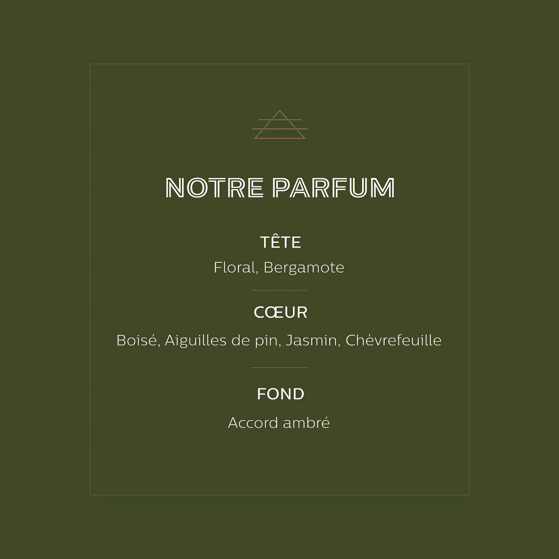 Pur, frais, boisé et fleuri, Notre Parfum porte en lui l’essence de la marque : l’agrume d’une bergamote comme fruit du soleil, l’été bruni des aiguilles de pin, les essences enivrantes des cascades de chèvrefeuille et de jasmin. Il est cet équilibre d’un sud apaisé, à la fois vivant et racé. Comme toutes nos fragrances by alinea, ce parfum d’ambiance est élaboré et fabriqué en Provence avec des parfums de Grasse. Laissez-vous séduire par le vaporisateur Notre Parfum pour donner une note méditerranéenne à votre intérieur.