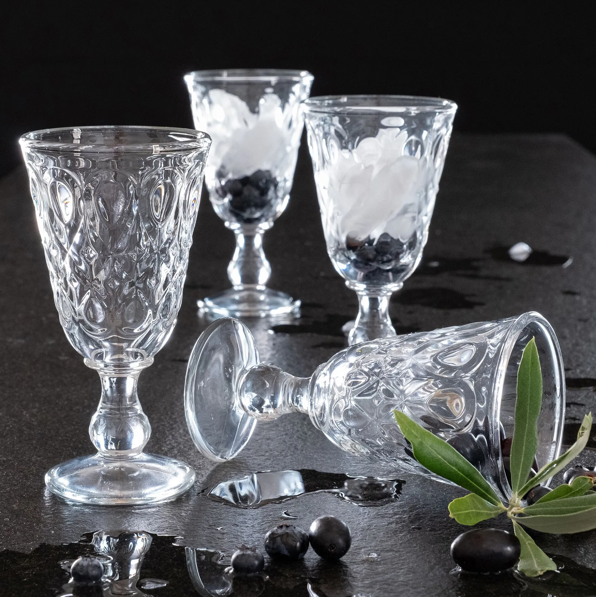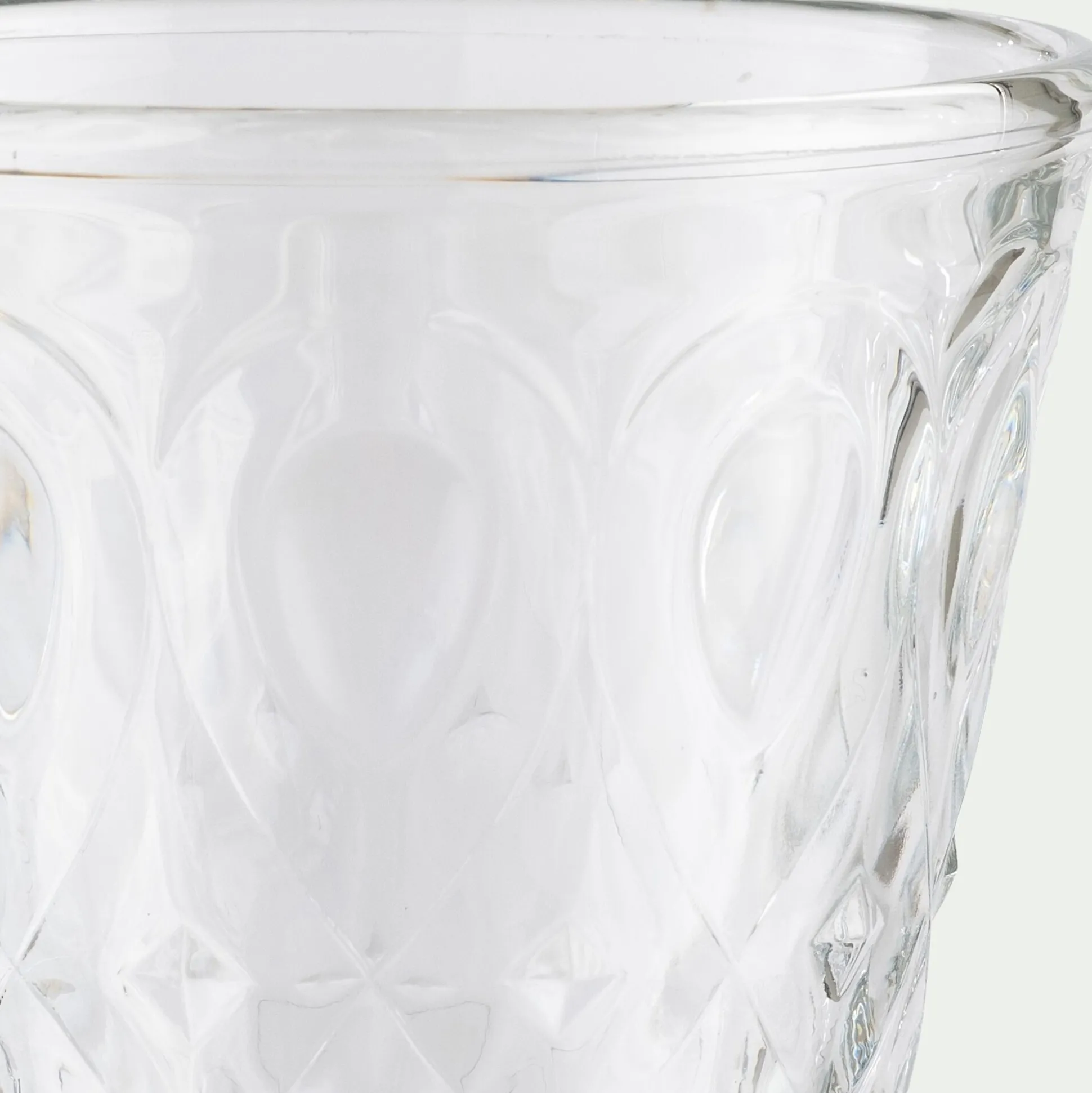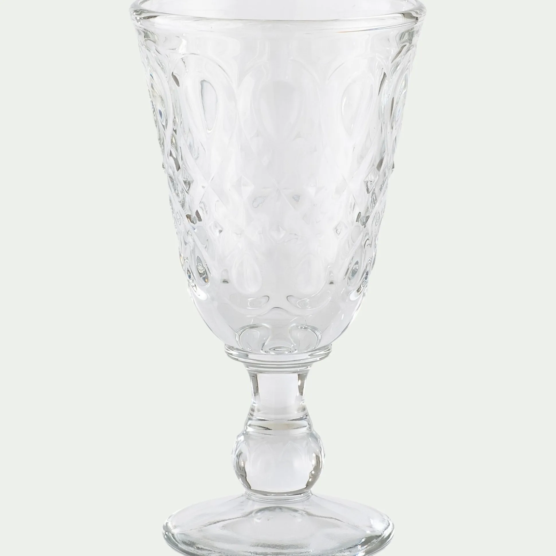 Ajoutez une touche d’élégance à votre table en optant pour ces verres à vin raffinés. Leur design brut et authentique, agrémenté d’un motif en relief, confère une esthétique unique à ces verres transparents. Ce lot de 6 verres de table ajoute subtilement une note chic à la déco de votre table. Avec une contenance de 23 cl, ces verres à pied en verre vous accompagnent tout au long du repas, ajoutant une dimension sophistiquée au dressage de votre table.