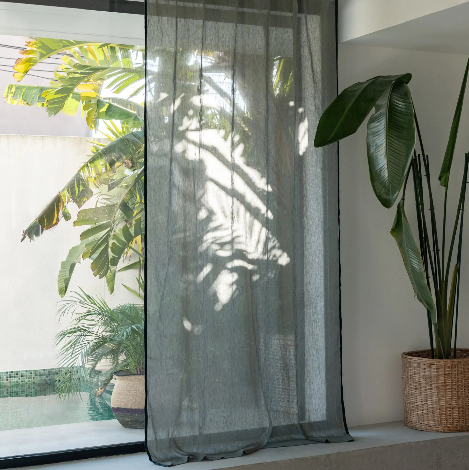 Préservez votre intimité tout en profitant d’une pièce lumineuse grâce au voilage Aliso. Fin et légèrement transparent, ce tissu nait d’un métissage entre le lin et le coton. Ce mélange des fibres naturelles offre un voilage à l’aspect délicat et pourtant résistant. De 140×260 cm, ce voilage uni encadre une fenêtre et apporte de la structure à l’espace. Dans notre coloris vert cèdre, il participe à une décoration naturelle et apaisée, inspirée de l’âme d’une forêt.