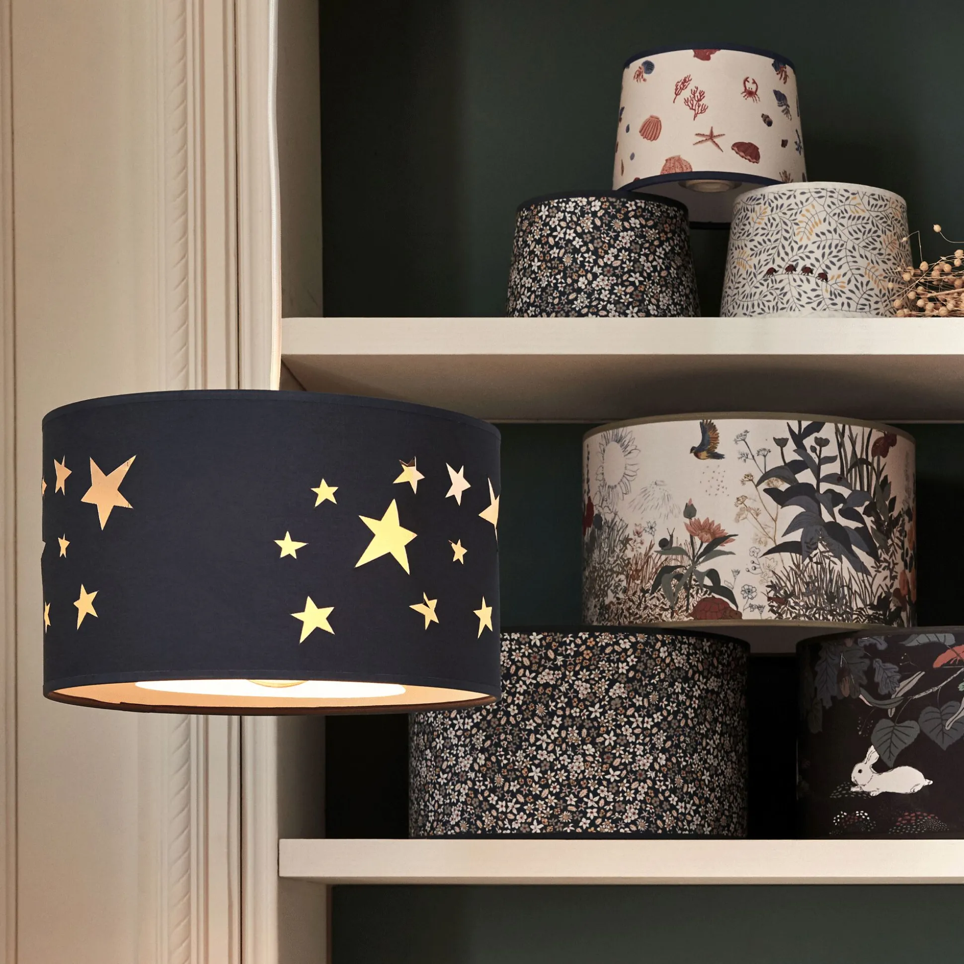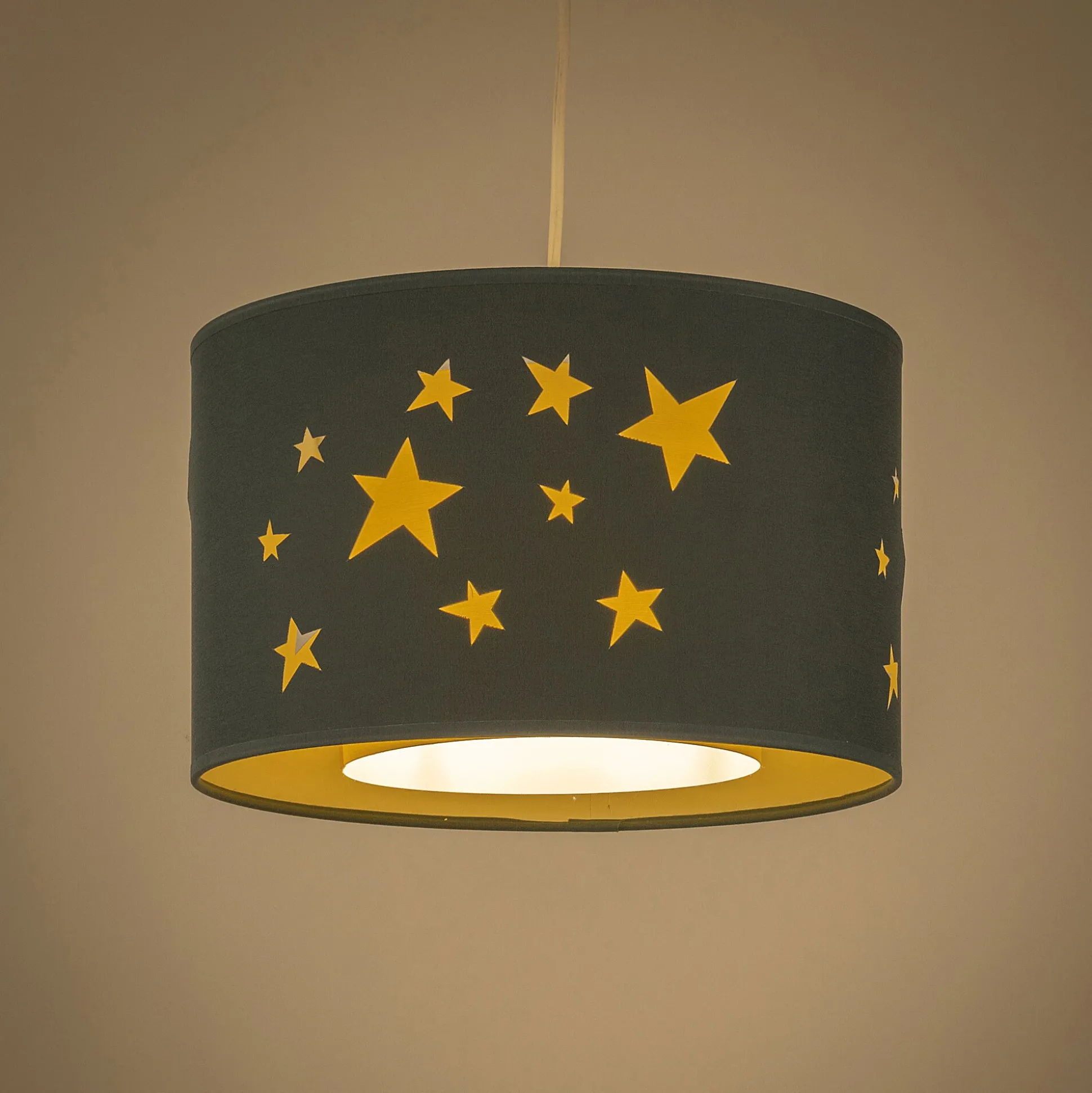 Cet abat-jour pour suspension apportera de la féérie dans la chambre de votre enfant. Atypique, la découpe forme une pluie d’étoiles. De fabrication française, cet abat-jour non électrifié à la particularité de changer en fonction de vos envies. Une fois éclairée, il dévoile ses atouts en ajoutant le diffuseur interne en fond coloré qui donne un effet de superposition pour illuminer la chambre en douceur et passe de belles nuits étoilées.
