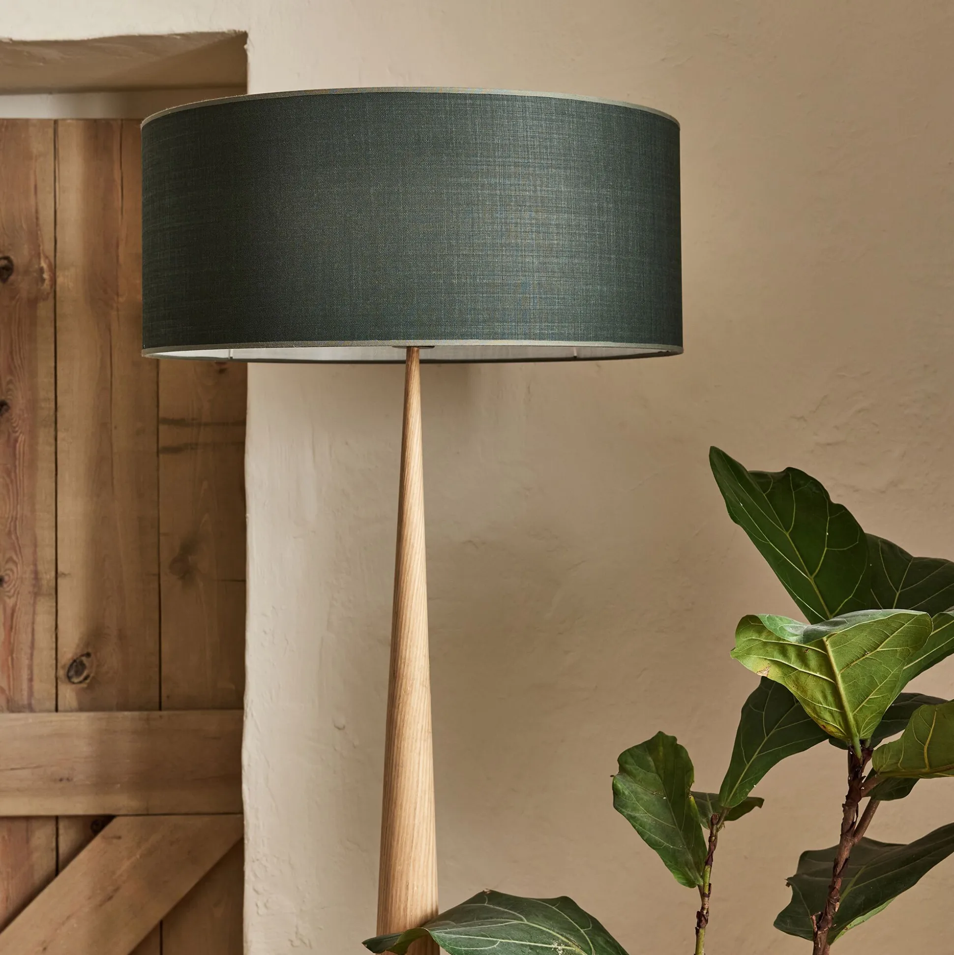Abat-jour en coton et structure en acier époxy.