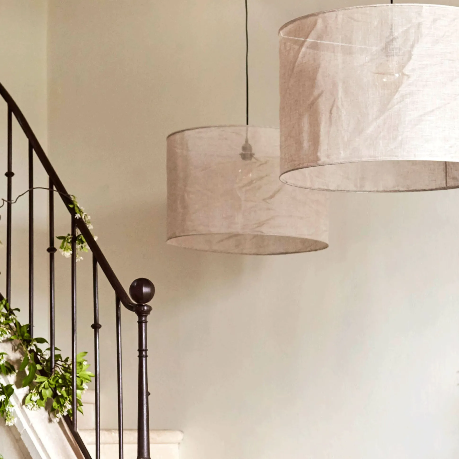 Cette suspension s’inscrit parfaitement dans un style chic et voluptueux. Elle est à la fois sobre et design, l’utilisation du lin avec son effet légèrement froissé apporte une touche plus brute tout en subtilité grâce à la légèreté et aux effets de transparence du lin. Pour un rendu parfait, choisissez une ampoule LED à filament.