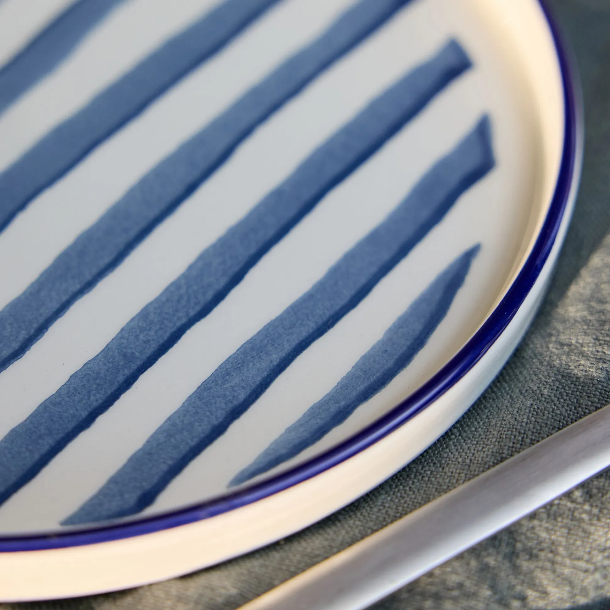 Cette assiette à dessert en céramique blanche, sublimée par un élégant motif marin à rayures peint à la main, allie avec finesse simplicité et sophistication. Solide et conçue pour un usage quotidien, elle est également facile à entretenir grâce à sa compatibilité avec le lave-vaisselle. Fabriquée en Turquie, elle incarne un savoir-faire unique empreint de tradition.