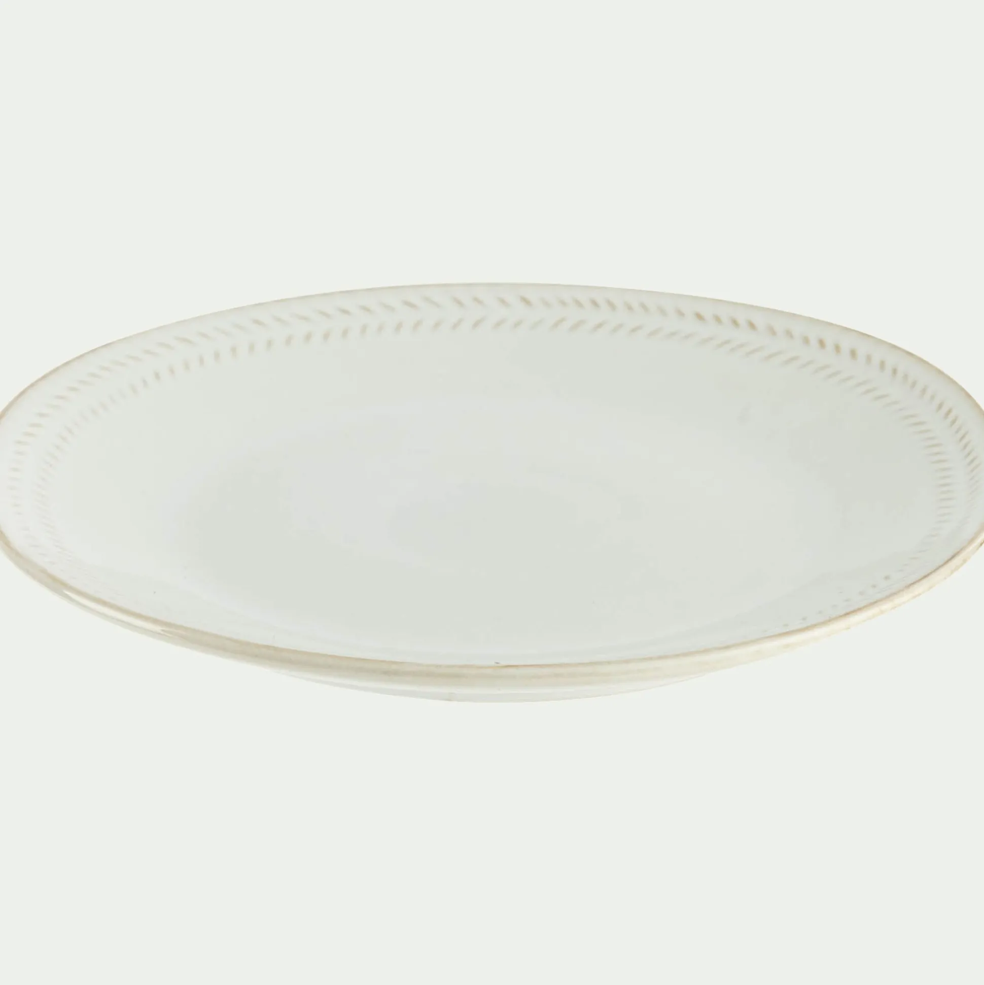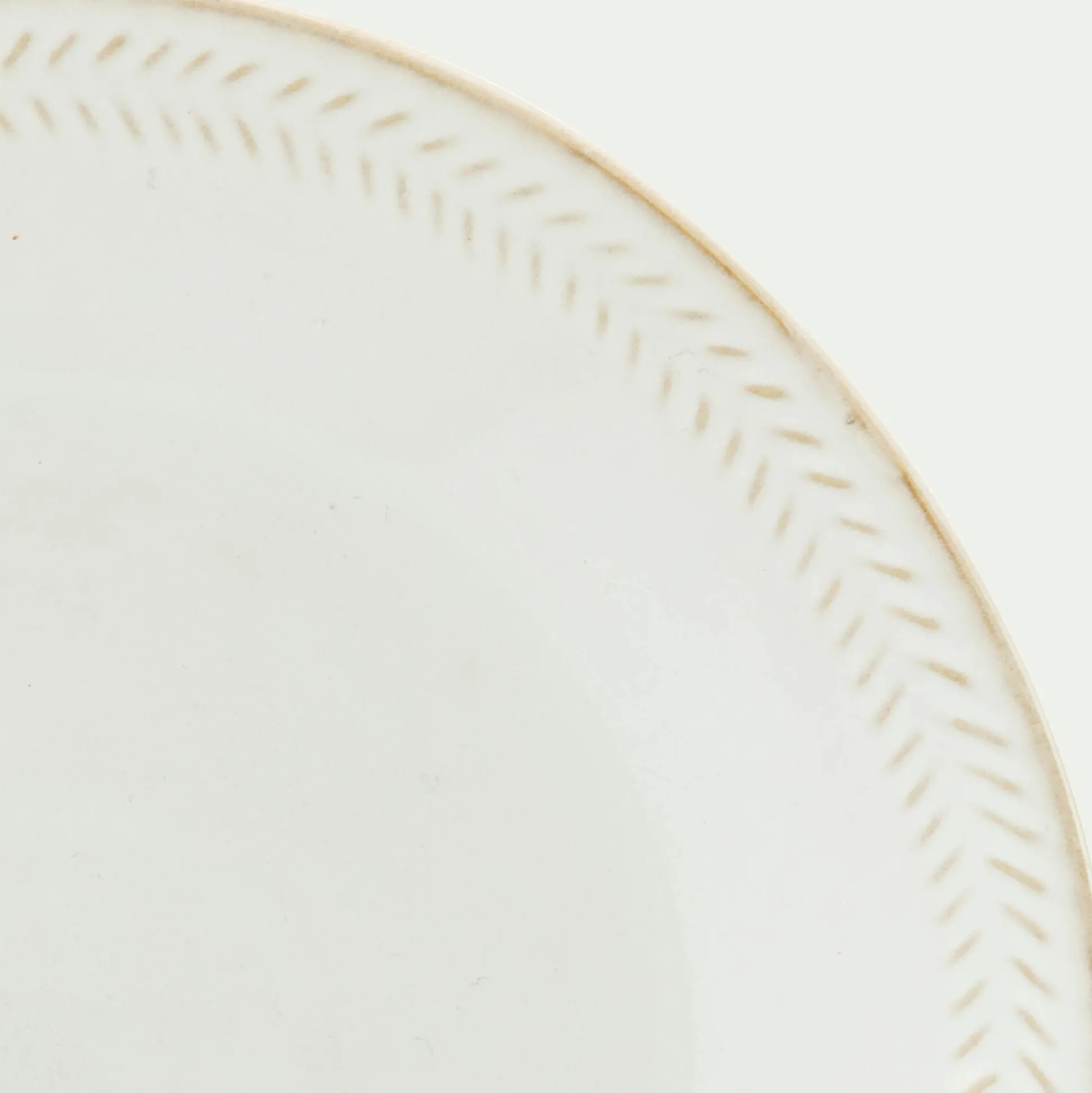 Sublimer la dernière touche de vos repas avec une élégance naturelle. Ces délicates assiettes à dessert en grès, avec leur liseré distinctif et leur motif beige discret sur un fond blanc ventoux, sont le support idéal pour mettre en valeur vos créations sucrées. Conviviales et résistantes, elles apporteront une note raffinée à vos repas en famille et entre amis. Pour une table harmonieuse et complète, découvrez également le reste de notre élégante gamme en grès.