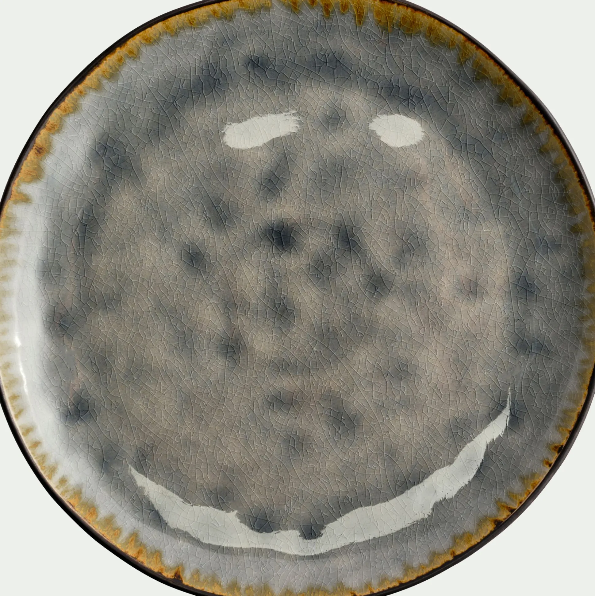 Servez vos gourmandises dans l’assiette à dessert Selime pour réveiller l’appétit de vos convives. Cette assiette ronde de 20 cm de diamètre est confectionnée en grès avec une finition en émail réactif. L’ensemble est vitrifié et diffuse une belle brillance qui mettra en valeurs vos mets. Les couleurs définitives se révèlent à la cuisson : un procédé rendant chaque assiette unique. Les nuances de gris se mélangent à des tonalités brunes : une rencontre poétique rappellant la mer et la terre. Les irrégularités et autres aspérités de cette assiette à dessert en grès lui confèrent un charme authentique qui sublimera votre dressage instantanément.