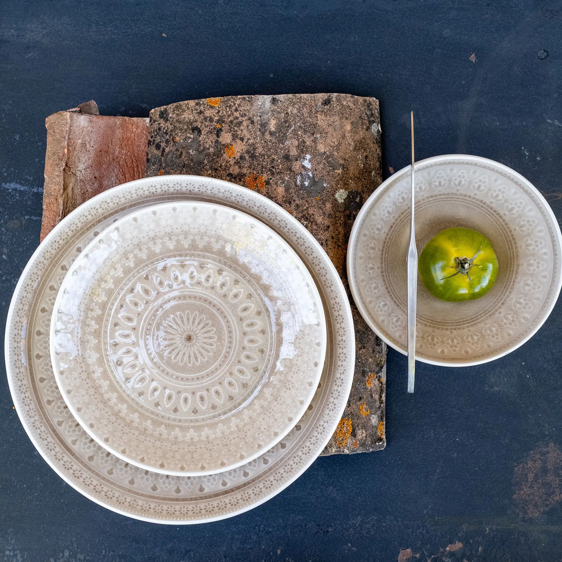 Sublimez votre dressage avec l’assiette plate en grès Dots. Cette jolie céramique arbore notre coloris beige alpilles, une teinte douce et intemporelle qui se marie à tous les thèmes et toutes les occasions. La surface mise en valeur par un émail brillant met en scène un motif régulier qui apporte une touche d’originalité au dressage. Une assiette ronde qui apporte une nouvelle dimension aux repas de famille.