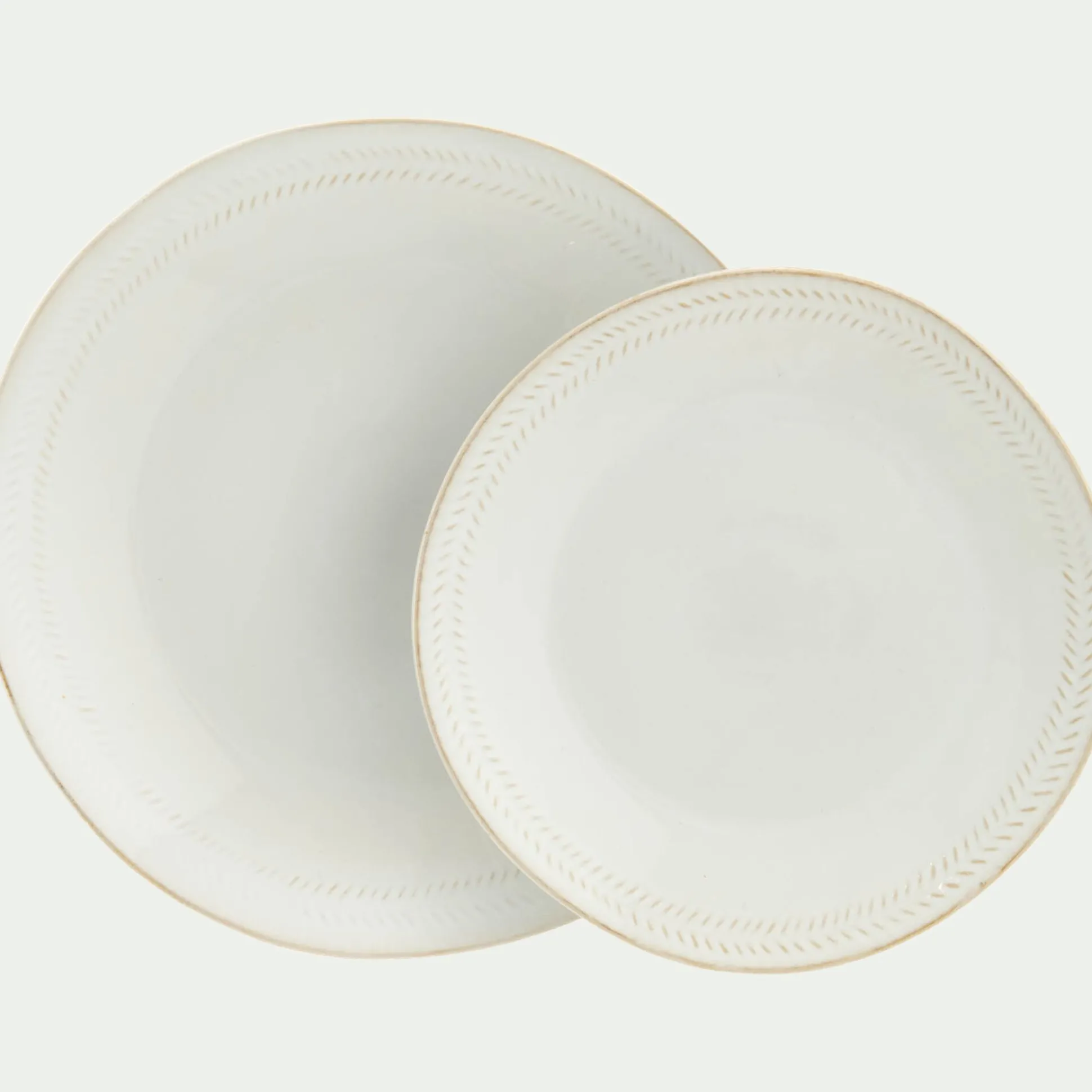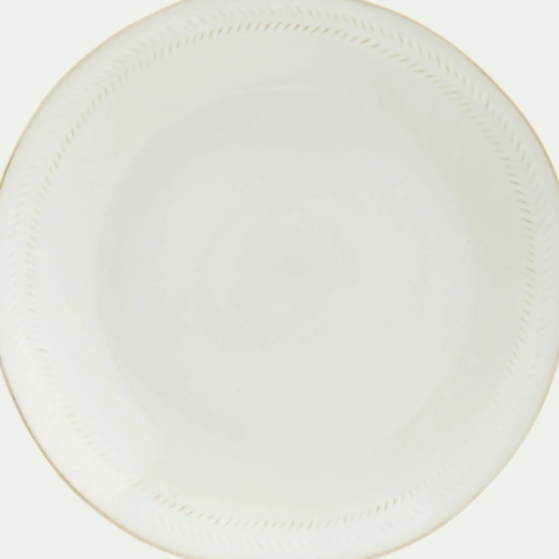 Assiette plate en grès avec liseré beige D28cm – blanc ventoux
