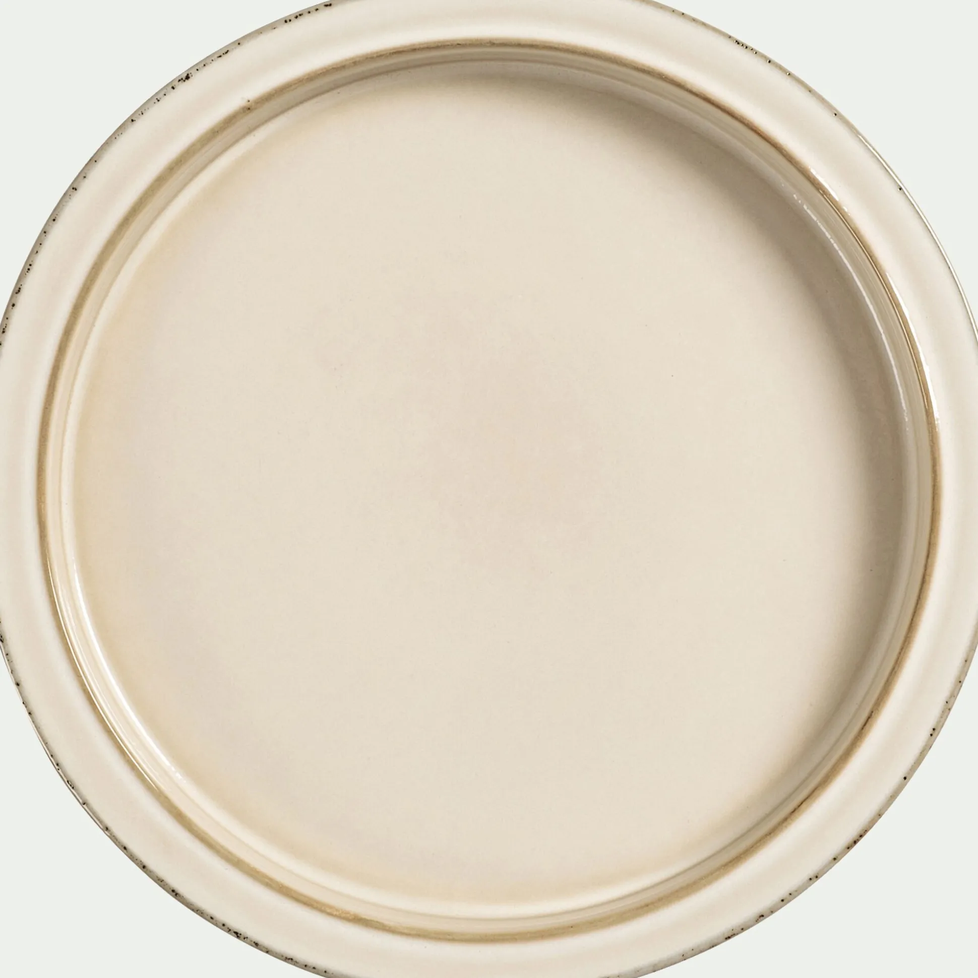 Halo est une assiette plate au style rustique, très tendance. Confectionnée en grès, elle arbore notre coloris blanc ventoux : une nuance intemporelle aux sous tons chaleureux. Le blanc présente de petites variations de couleur qui participent à une assiette au design authentique. Cette assiette ronde de 26 cm de diamètre est dotée d’un bord plat, une particularité qui sublime vos recettes et le dressage de la table.