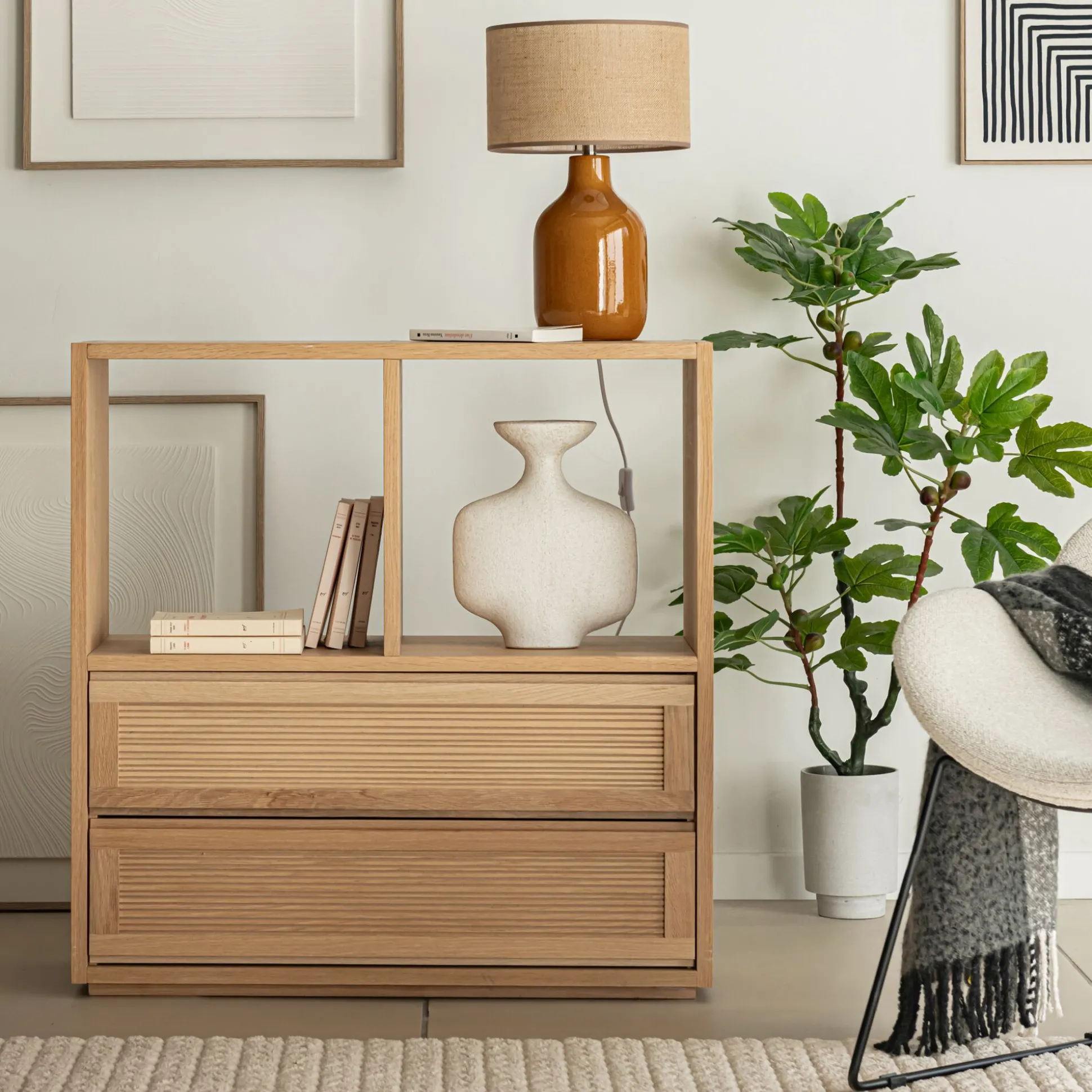 Ce bloc de grands 2 tiroirs en chêne se place dans votre composition pour ranger en toute discrétion. Cette gamme de meubles de salon se module au gré de vos besoins grâce à ses structures positionnables à la verticale ou à l’horizontale, et se personnalise avec ses portes, tiroirs et piètements.