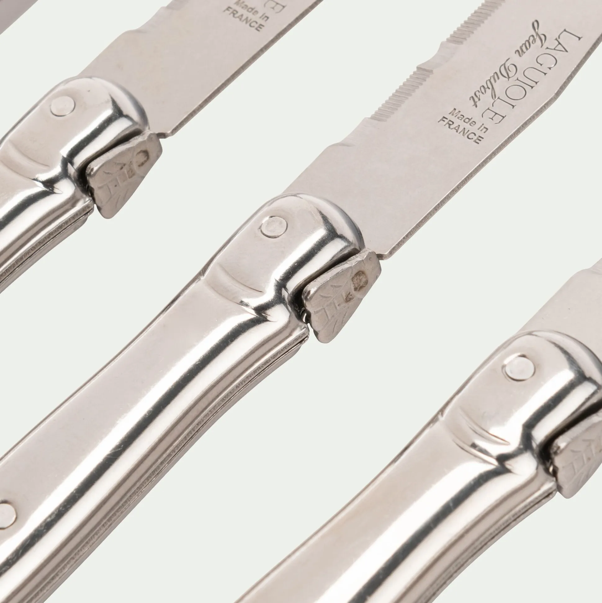 Depuis 4 générations, la société JEAN DUBOST, fondée en 1920, fabrique le célèbre couteau LAGUIOLE dans le plus pur respect de la tradition française. Le LAGUIOLE est fabriqué dans la région depuis plus de 200 ans. Son emblème « l’abeille » est un emblème de la région et un signe d’authenticité. Déclinés en plusieurs gammes, les couteaux JEAN DUBOTS LAGUIOLE sont un gage de qualité et de savoir-faire « 100 fabriqué à Thiers – France ».