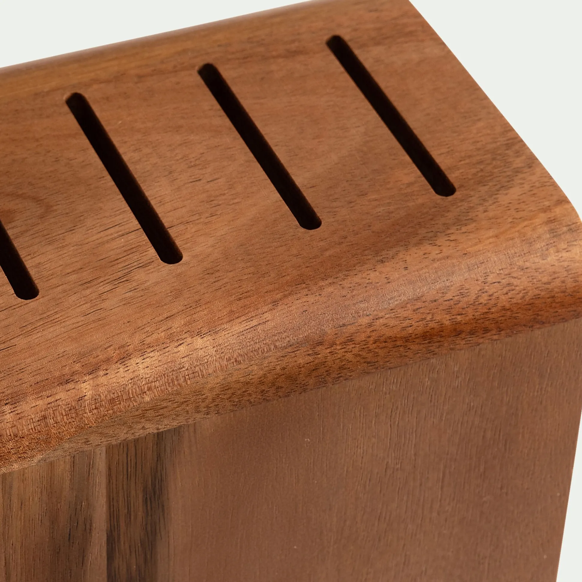 Alliez l’élégance du bois naturel à l’organisation de votre cuisine. Ce bloc en bois d’acacia est la solution idéale pour mettre en valeur vos plus belles lames tout en les gardant à portée de main. Fini les tiroirs encombrés : offrez à vos couteaux un rangement digne de ce nom, qui préserve leur tranchant et apporte une touche de chaleur à votre espace.