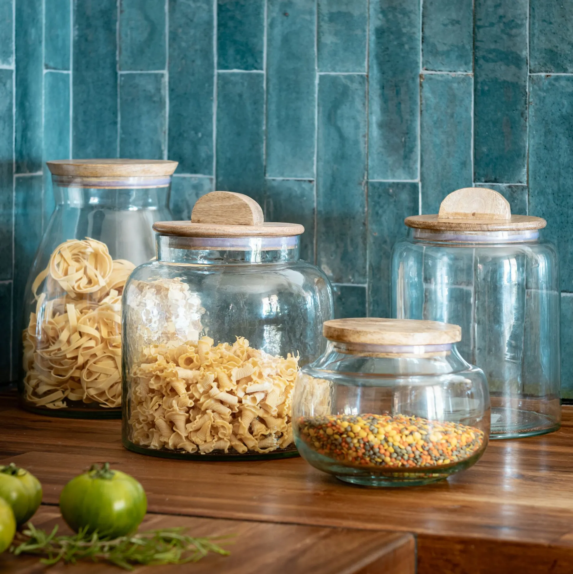 Avec les bocaux de conservation Bloca, votre cuisine gagne en élégance. Vos rangements s’harmonisent et mettent en valeur le produit brut : pâtes, riz, lentilles ou encore jus de fruit. En effet, ce bocal transparent arbore une forme inspirée de la bouteille. Ainsi, il permet de conserver vos boissons au frais, le tout avec une touche déco. Fabriqué en verre, ce grand bocal de 4L s’accompagne d’un couvercle en bois de manguier, une essence authentique qui apporte une touche chaleureuse à cet objet polyvalent.