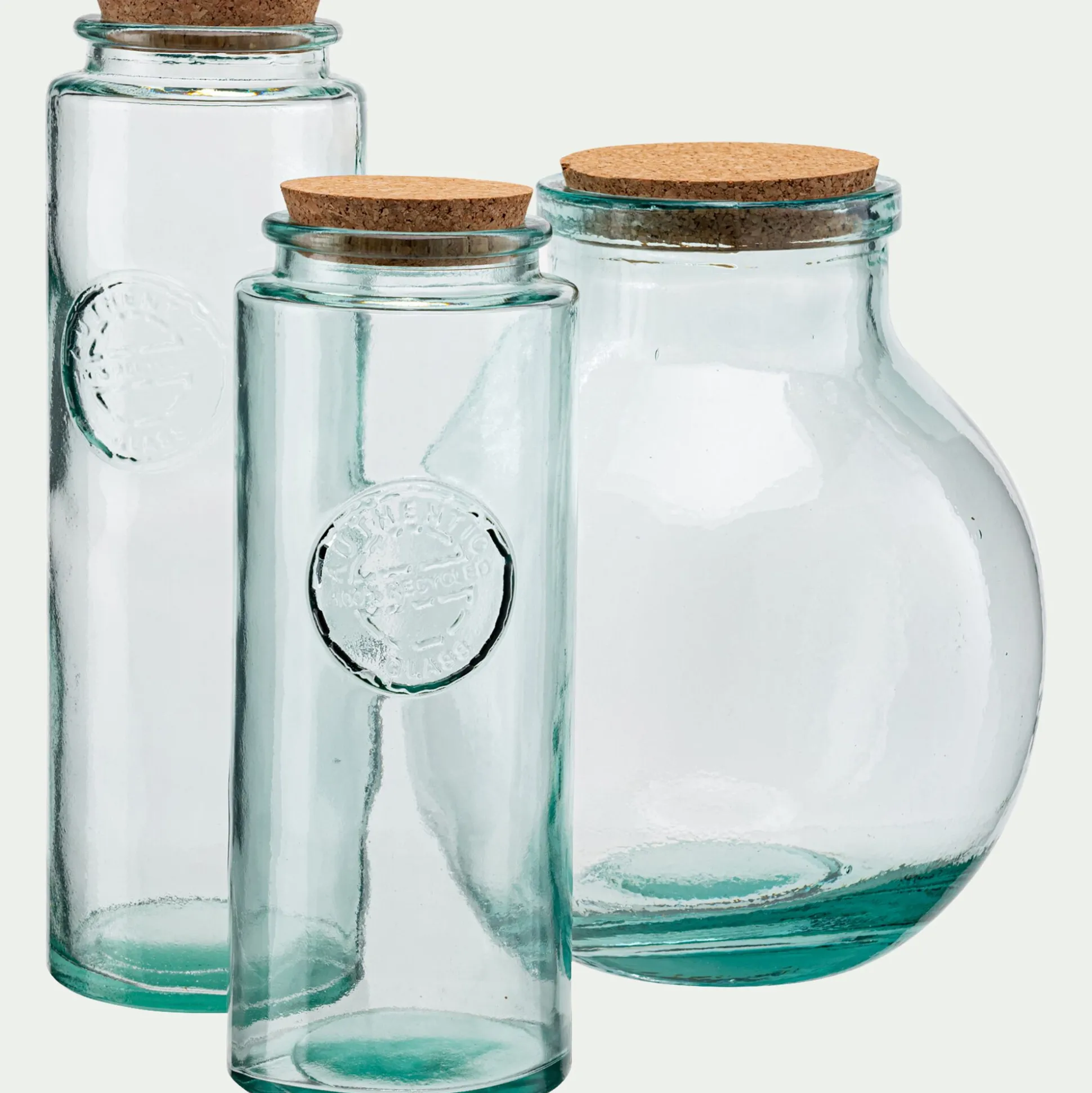 Verre recyclé avec bouchon en liège.