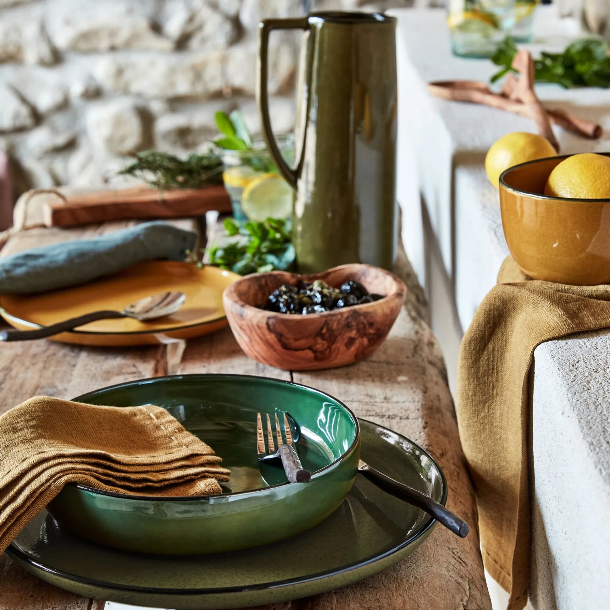 Salade printanière ou salade de fruits : le bol en grès Oliva vous accompagne de l’entrée jusqu’au dessert. Épuré, il se distingue par son coloris jaune, à la fois chaleureux et dynamique. Il apporte une touche de couleur à la cuisine et participe à un environnement joyeux et agréable. Ce bol jaune est confectionné au Portugal, pays de la céramique et du grès. Cette très belle pièce rejoint vos placards et en sort quotidiennement pour passer à table.