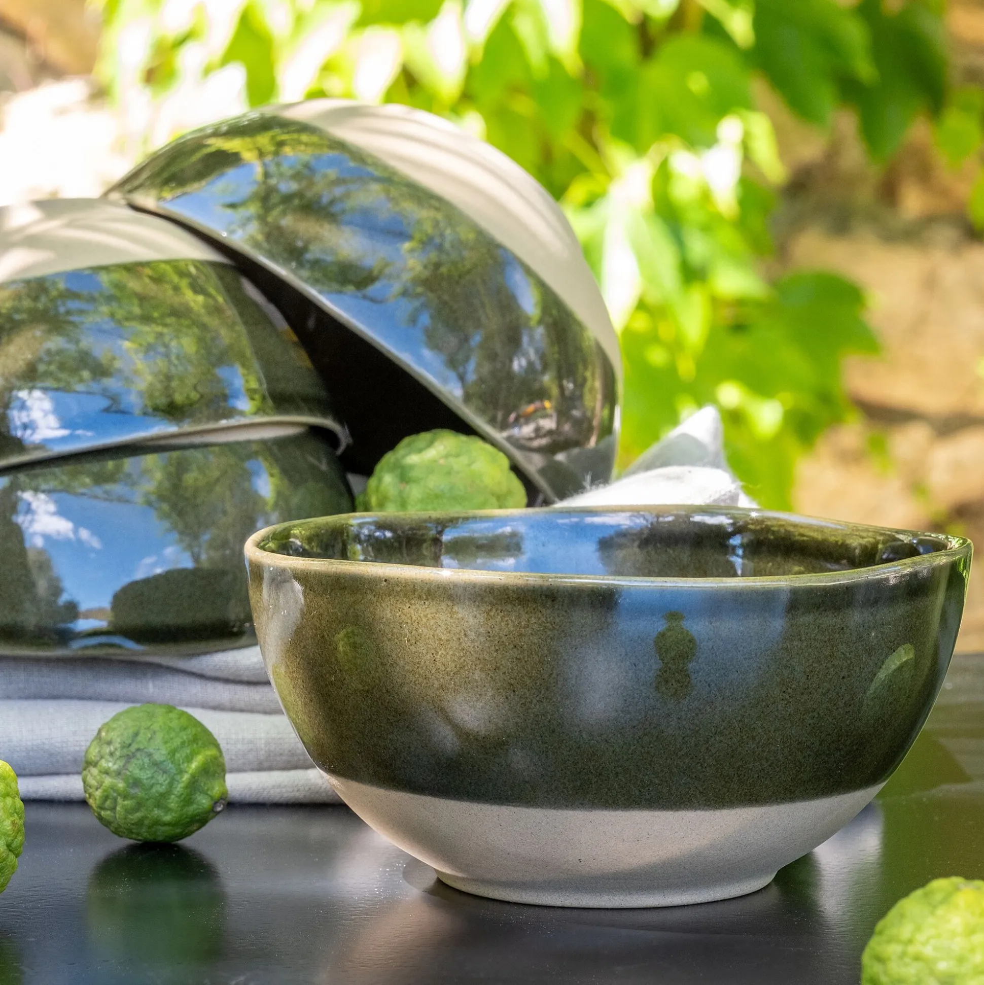 Avec son design organique et ses contrastes de matières, le bol Avocado invite à une table authentique. Sa base en grès brut, couleur terre, lui confère une touche naturelle et texturée, tandis que sa partie supérieure, lisse et brillante, dévoile une teinte vert cèdre. Un équilibre parfait entre rusticité et élégance, idéal pour savourer un petit-déjeuner réconfortant ou une soupe parfumée.