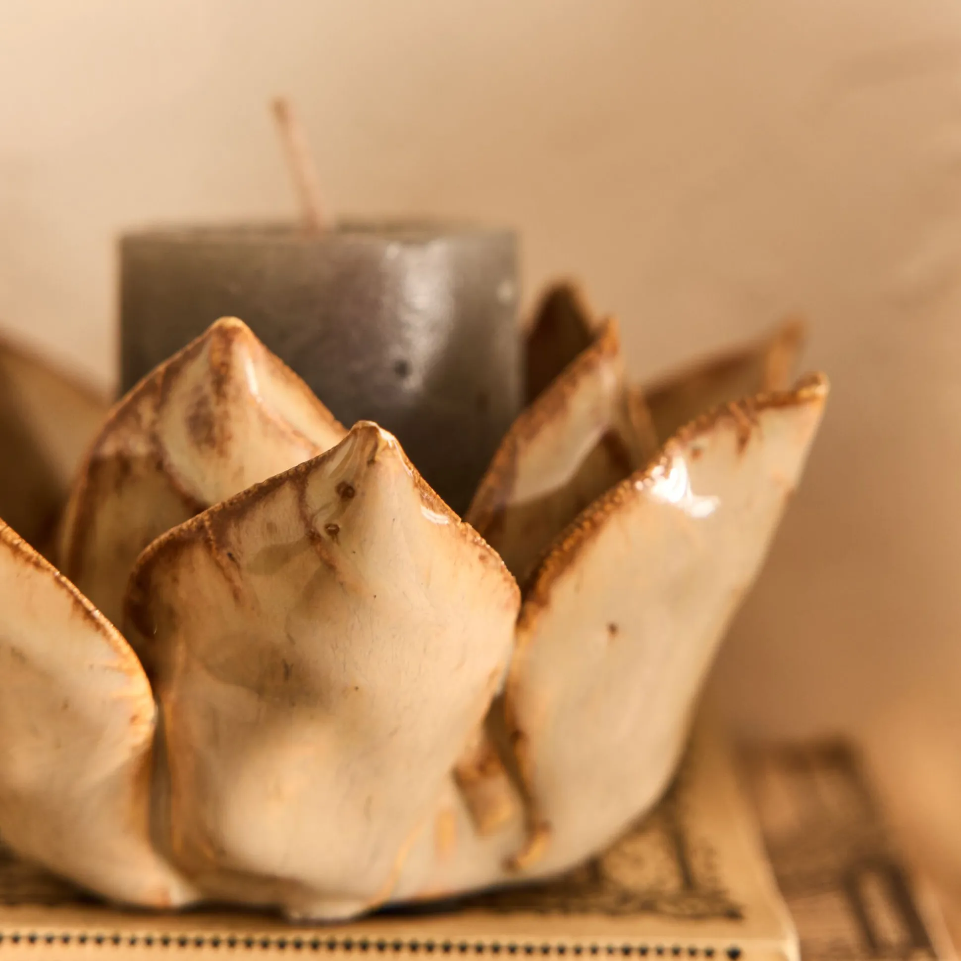 Ce bougeoir en forme de fleur séduit par son design délicat et poétique. Réalisé en céramique beige, il présente des pétales en relief qui s’ouvrent avec élégance pour accueillir en leur cœur une bougie chauffe-plat. Véritable objet déco, il diffuse une lumière douce et apaisante, tout en apportant une touche naturelle et raffinée à la décoration. Un accessoire à la fois pratique et esthétique, parfait pour créer une ambiance chaleureuse.