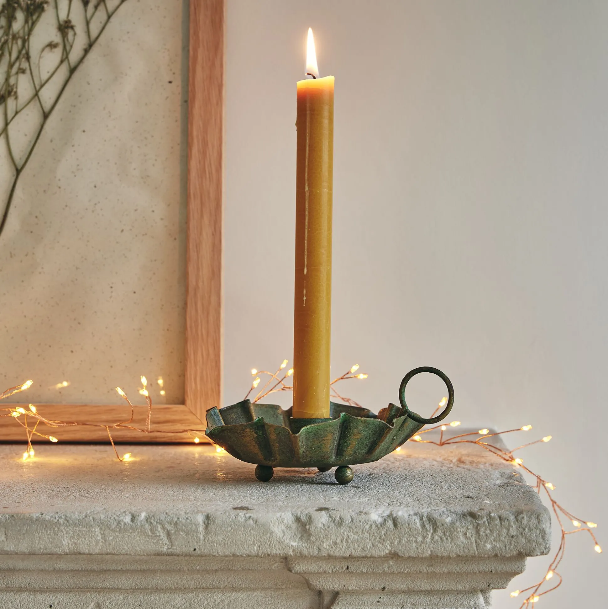 Illuminez vos soirées de manière authentique avec ce bougeoir plat au design ancien. Tout droit sorti d’une époque lointaine, il arbore un coloris bronze patiné au charme intemporel. Ce bougeoir en fer doré apporte du caractère à votre intérieur. C’est un objet déco de choix pour les fêtes, mais aussi tout au long de l’année. Parfait pour accueillir une bougie flambeau, ce bougeoir crée une ambiance chaleureuse et accueillante, idéale pour vos dîners festifs ou vos moments de détente.